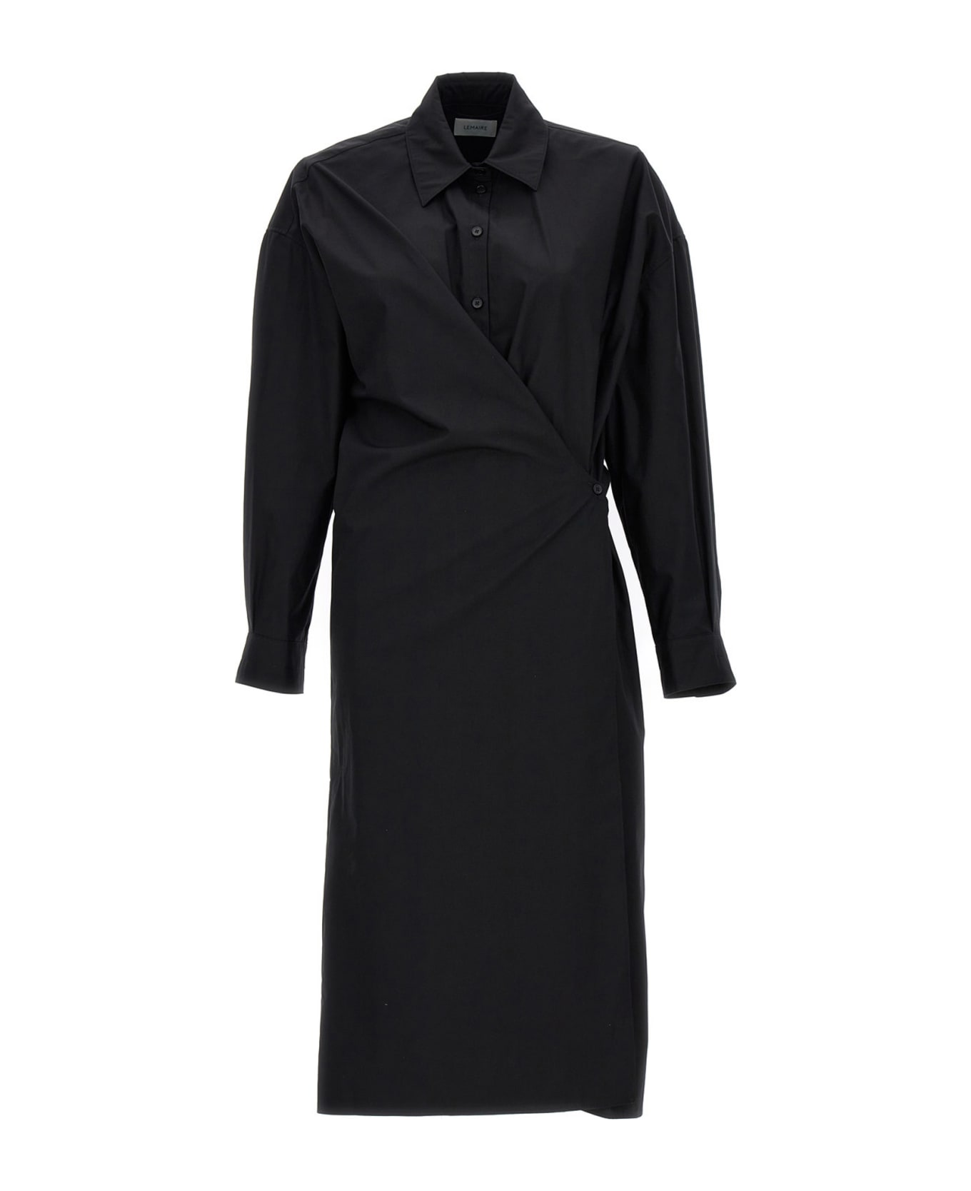 Twisted' cotton poplin dress with shirt style and a button fastening.