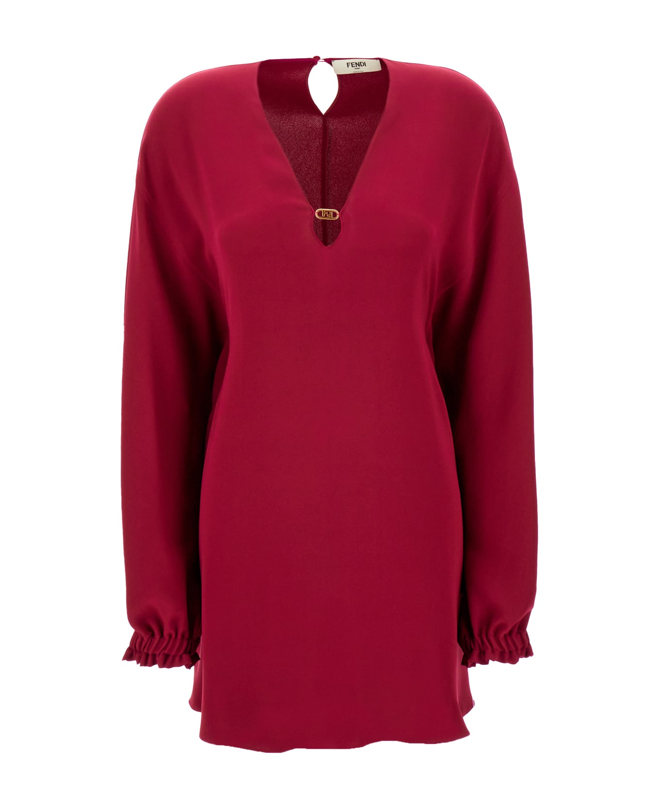Flared dress realized in pure silk characterized by tonal fabric insert to tie at the back enriched by metal logoed plate at the front. -V neckline -Drop shoulders -Elastic cuffs -Button closure at the back -Slightly longer back -Lined Composition: Exterior: 100% Silk