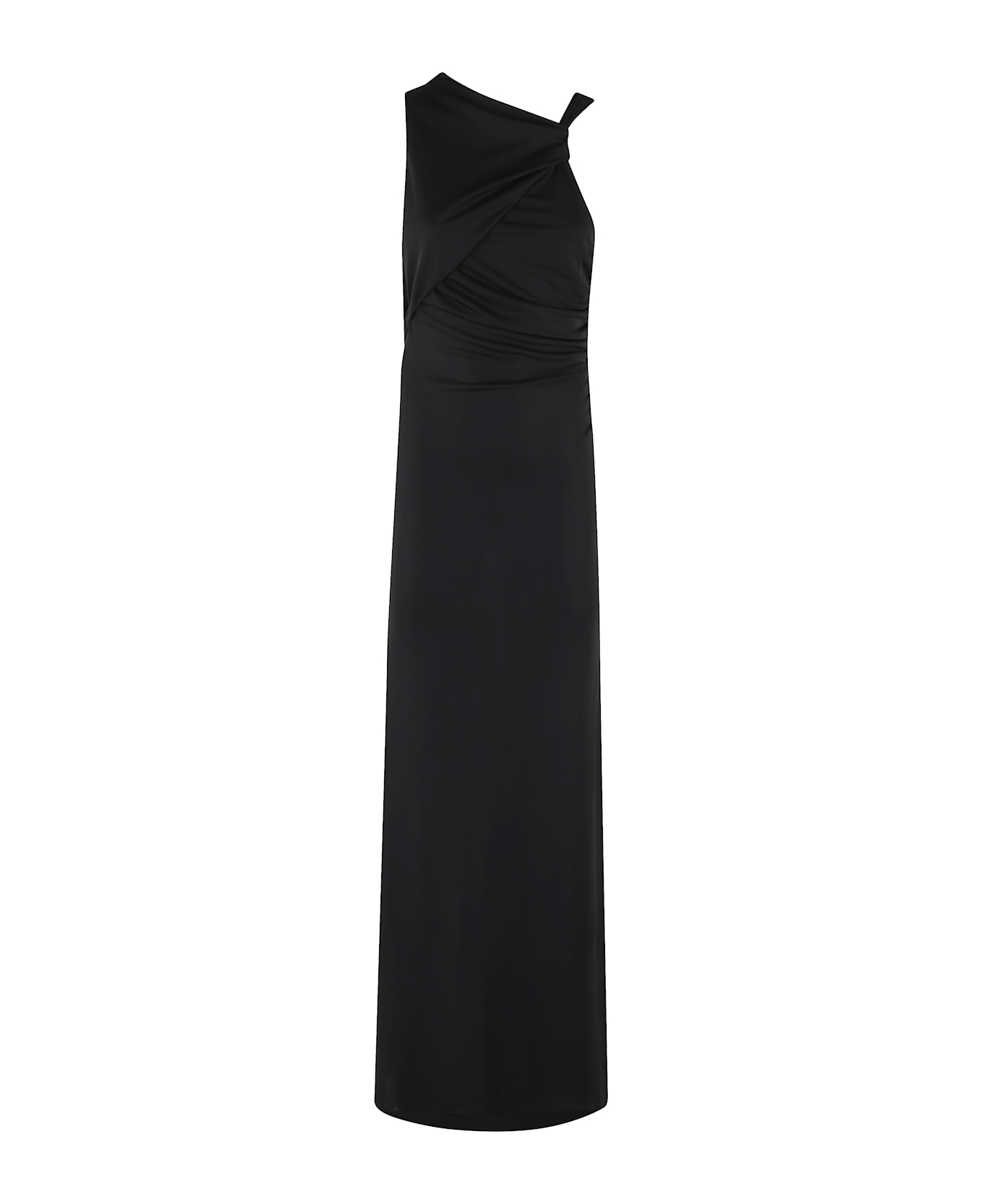 Venus dress - The Andamane - Black color - Stretch jersey fabric - Asymmetrical neckline - Sleeveless - Draped waist - Wide neckline at back - Regular fit