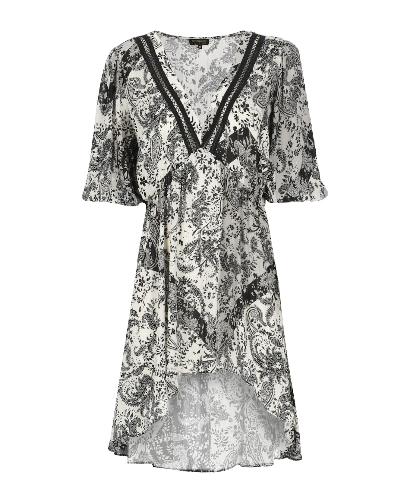 - Ivory Miss Bikini viscose dress for woman - V neck - Short sleeves - All-over contrasting color pattern - All-over lurex details