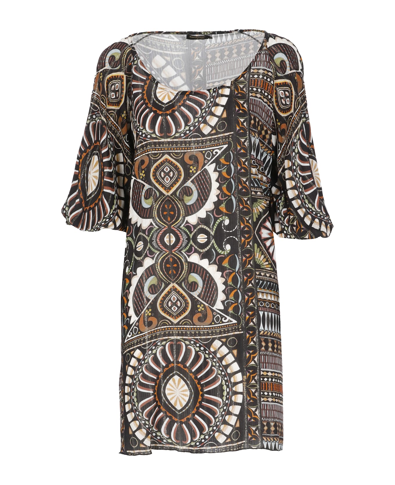- Black Miss Bikini viscose dress for woman - Round neck - Short sleeves - All-over contrasting color pattern - All-over lurex details