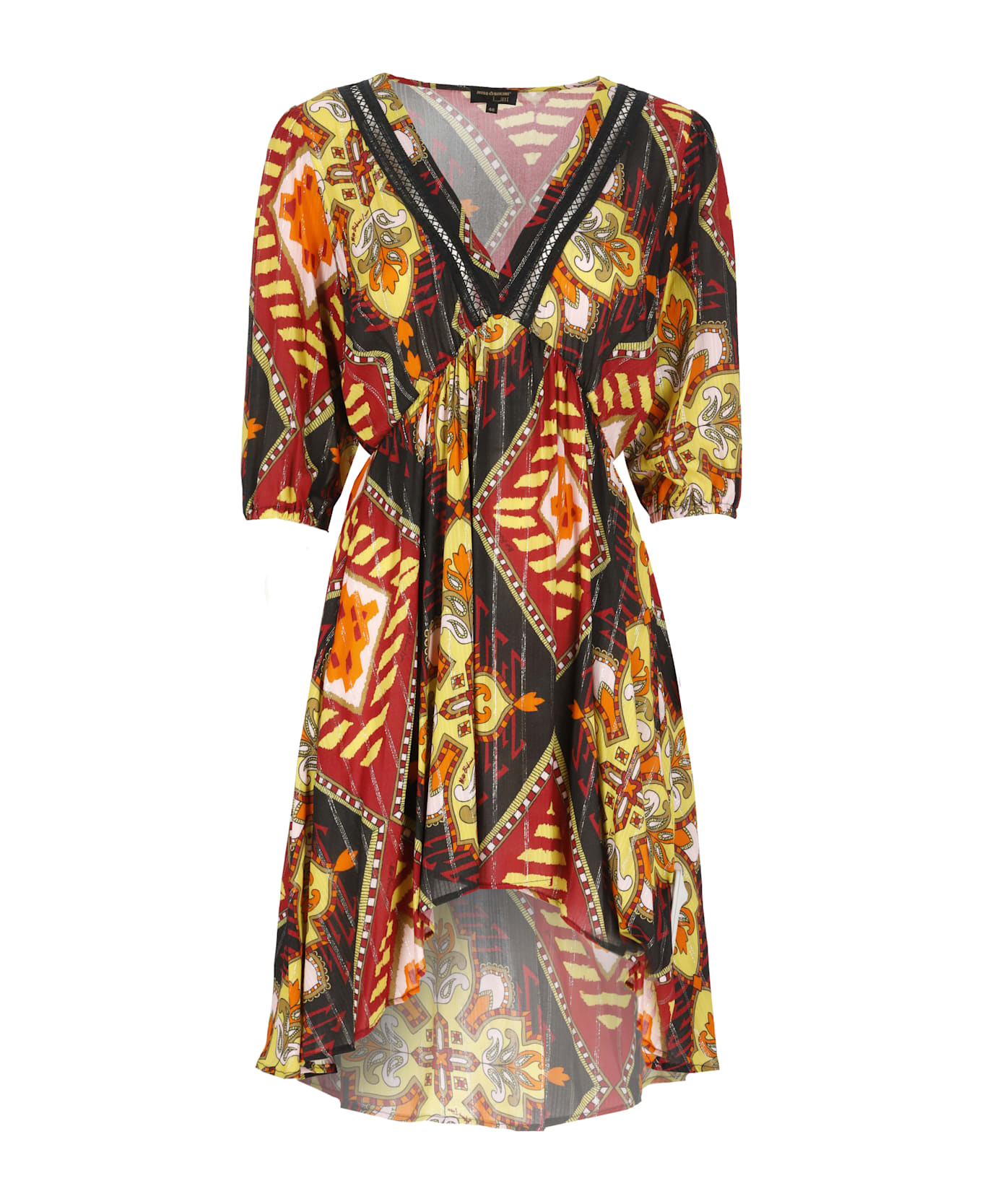 - Multicolor Miss Bikini viscose dress for woman - V neckline - 3/4 sleeves with elastic cuffs - Elastic waist - Flared hem