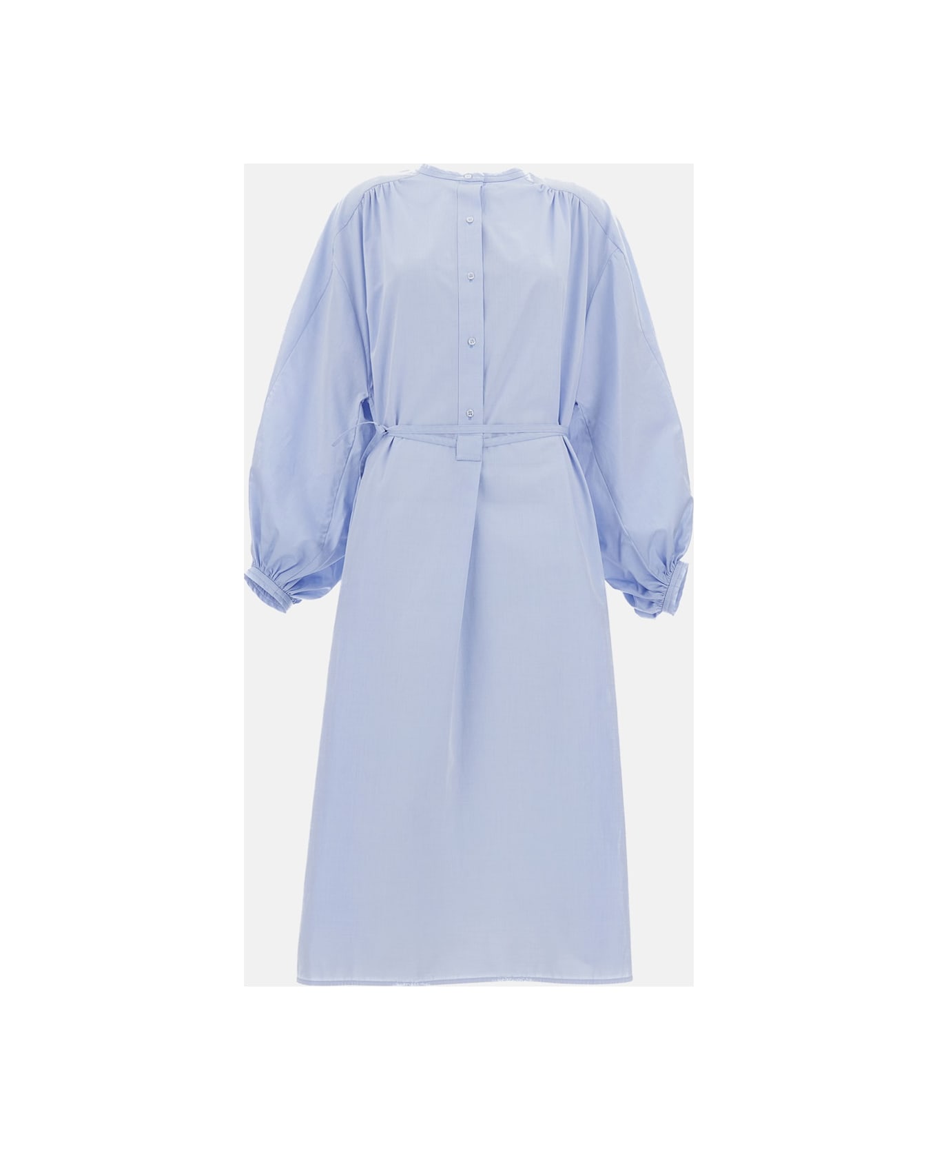 Shirt dress with long balloon sleeves.