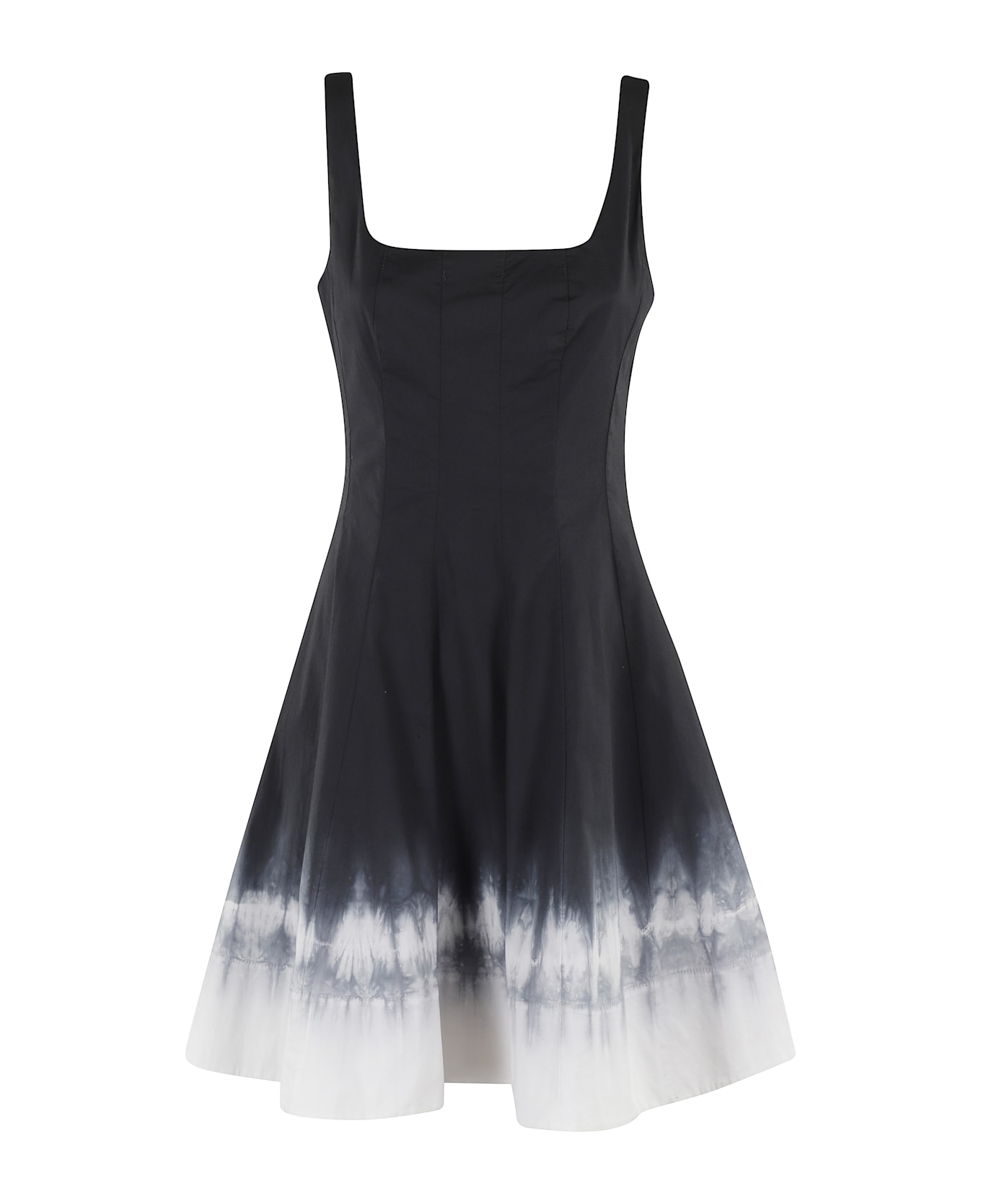Wells dress - Staud - Black color - Cotton poplin fabric - Tie-dye print bottom - Straight neckline - Spaghetti straps - A-line mini skirt - Back zipper closure - Regular fit