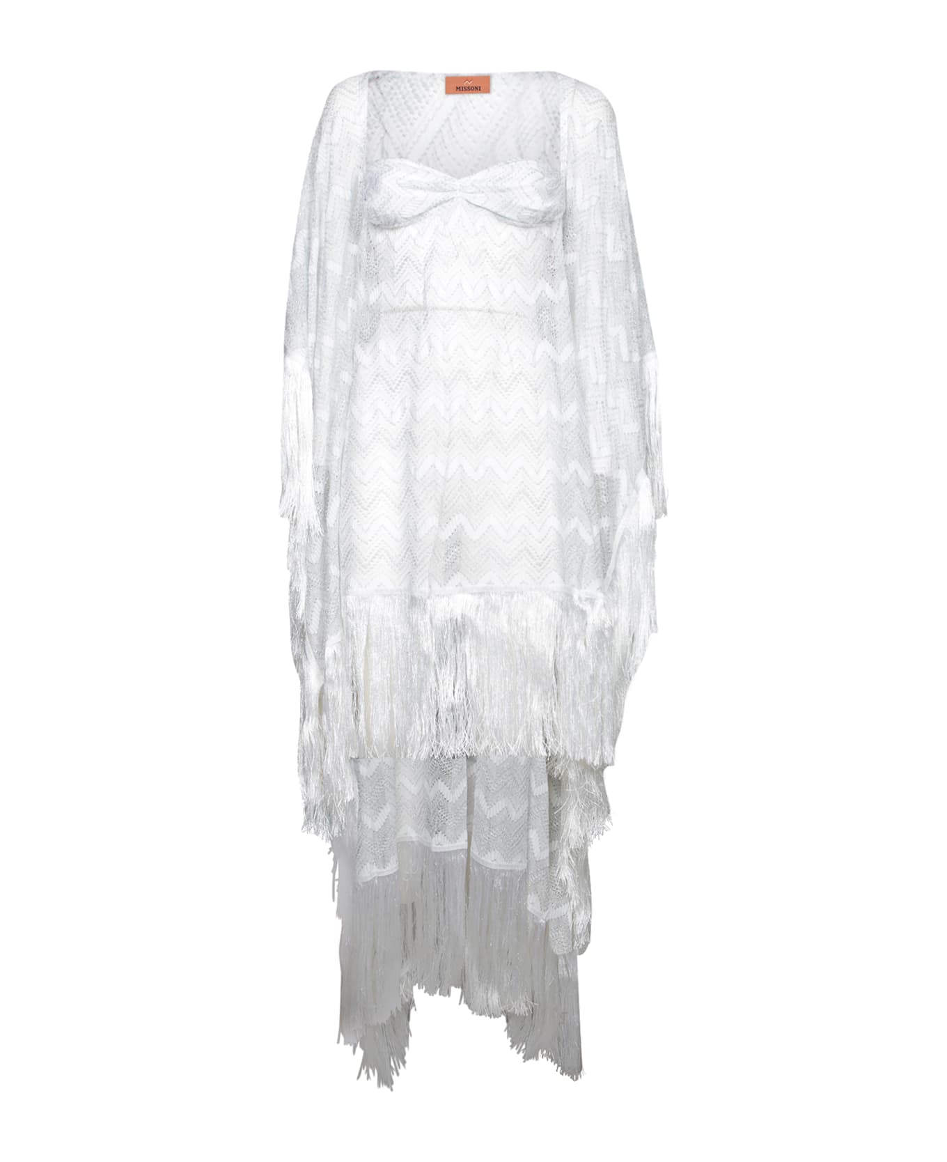 This Missoni kaftan dress embodies a balance between bohemian elegance and couture glamour, featuring an eye-catching lamé finish and fringed hems that add a soft sway.