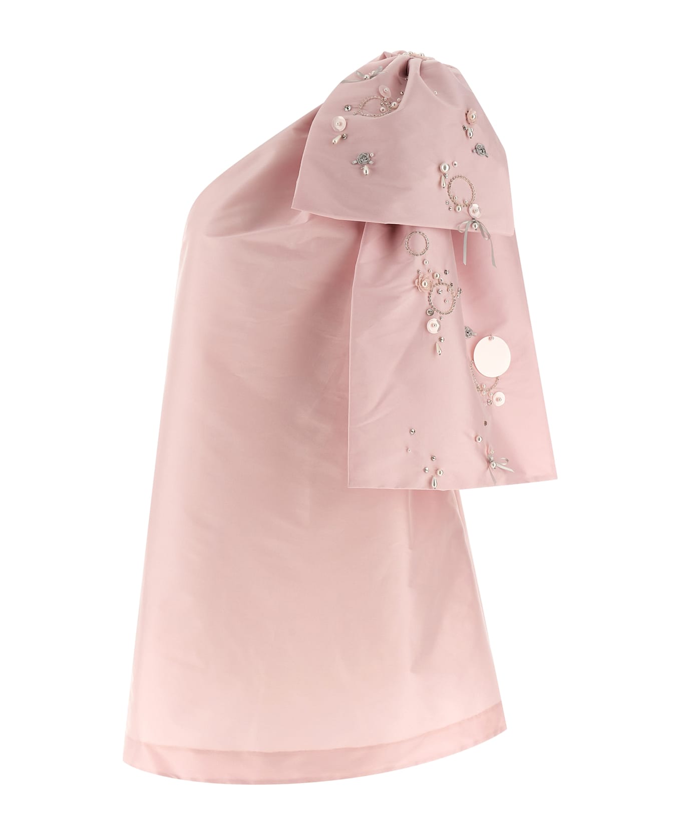 Mini 'Winnie' dress in crisp taffeta with one-shoulder model with maxi bow application and jewel embroidery, sleeveless, pockets, viscose lining.