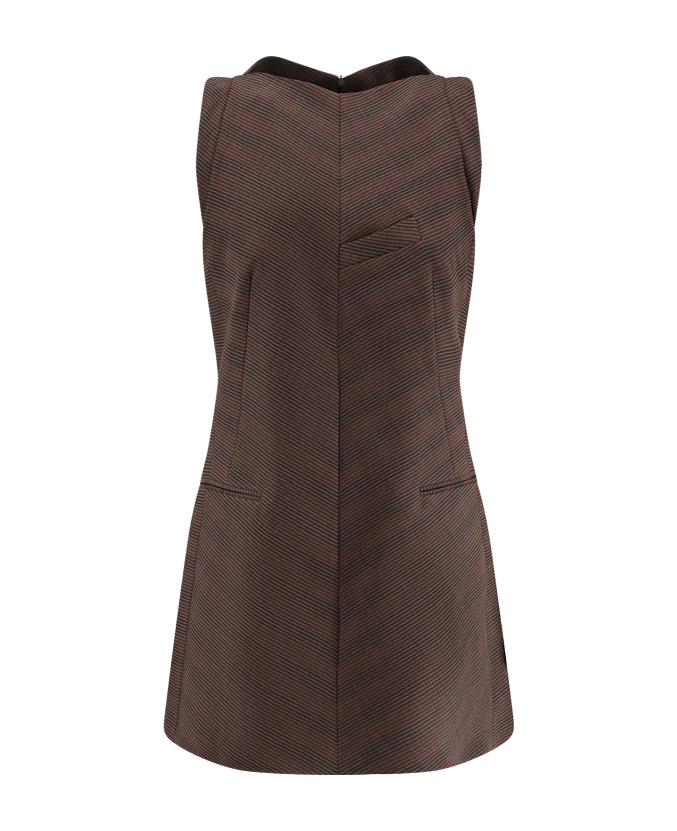 Hidden back zip closure Sleeveless Two front flap pockets and one breast pocket Made in Italy 53% polyester 43% virgin wool 4% elastane Lining: 100% viscose SKU: S52DA0067M35475001F