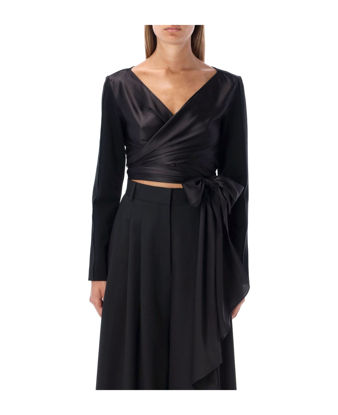 Viscose-blend Wrap Top By Bevza. Featuring: Long Sleeves V-neckline Wrap Design Self-tie Ribbon Model Is 1,72 M Tall And She's Wearing Size S