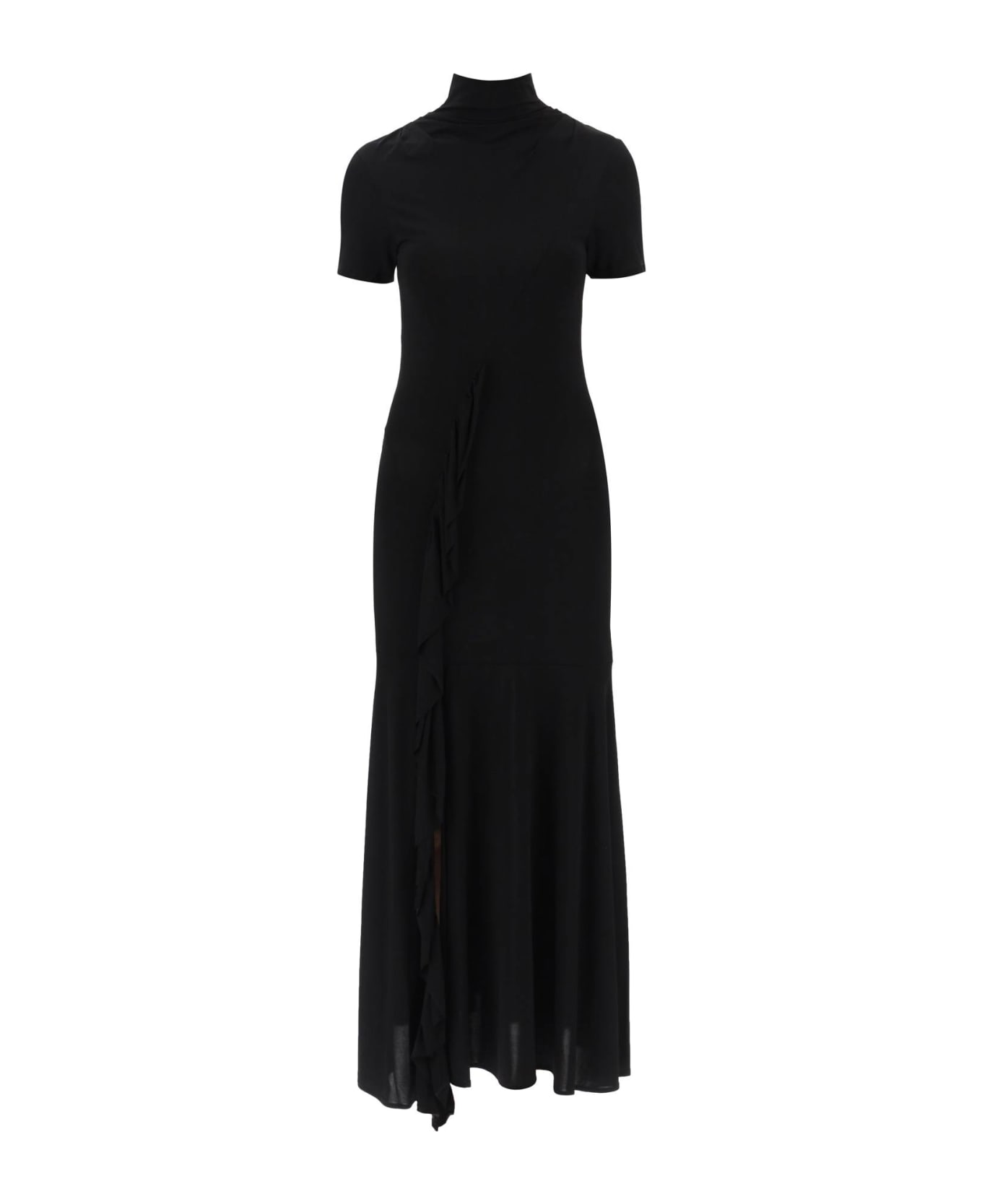 Short-sleeved long dress by Paloma Wool crafted in viscose jersey, embellished with a frill on the front. It features funnel neck and asymmetrical hem with a slit on the front. Fitted and flare. The model is 177 cm tall and wears size XS.