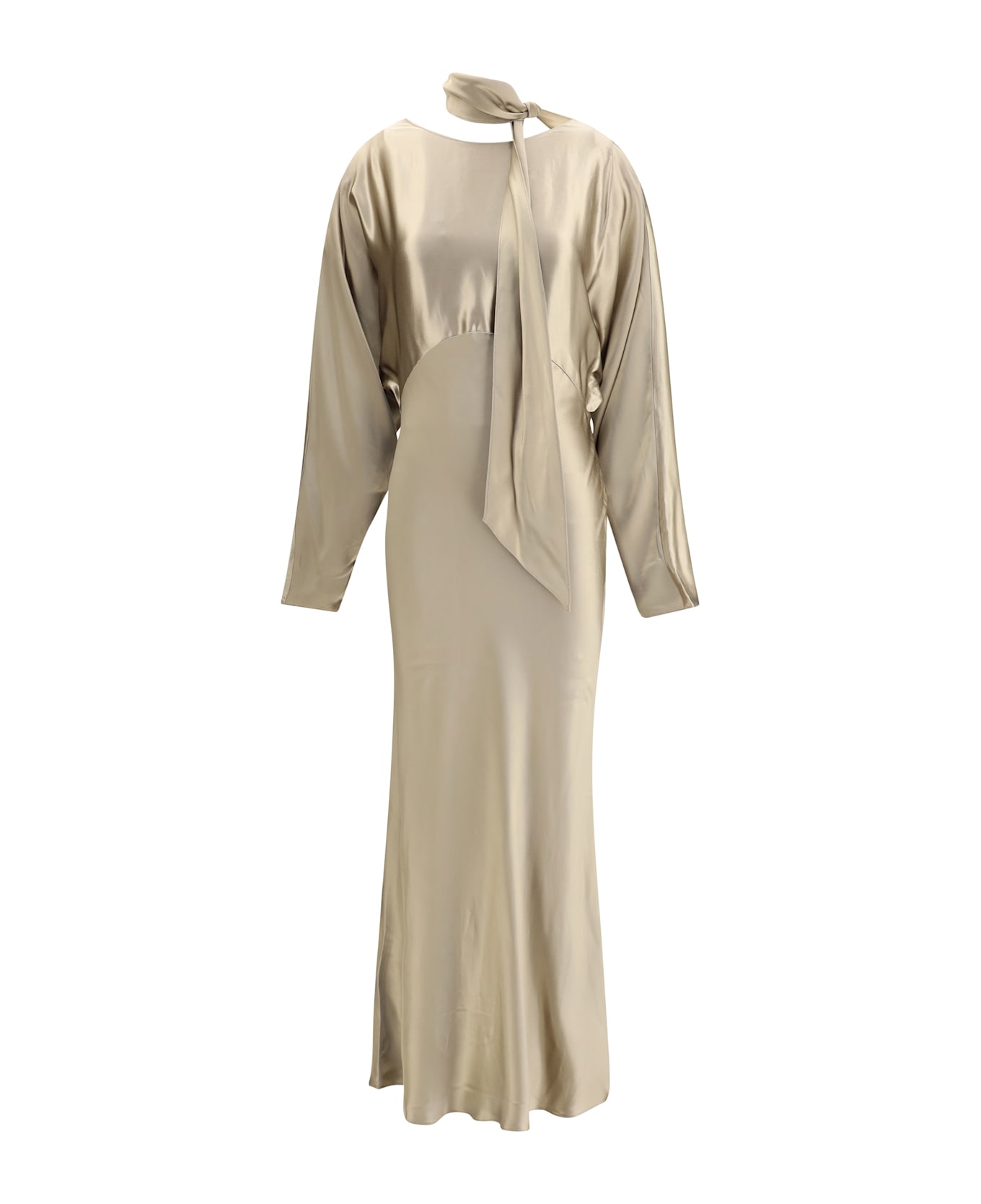The zizi long dress by the andamane is an elegant and sophisticated piece, featuring a boat neckline that extends over the long sleeves, giving a delicate and refined allure. the long, flowing skirt lightly accompanies the body, while the deep back slit adds a touch of discreet sensuality. a matching satin scarf completes the look, lending movement and versatility to the ensemble.