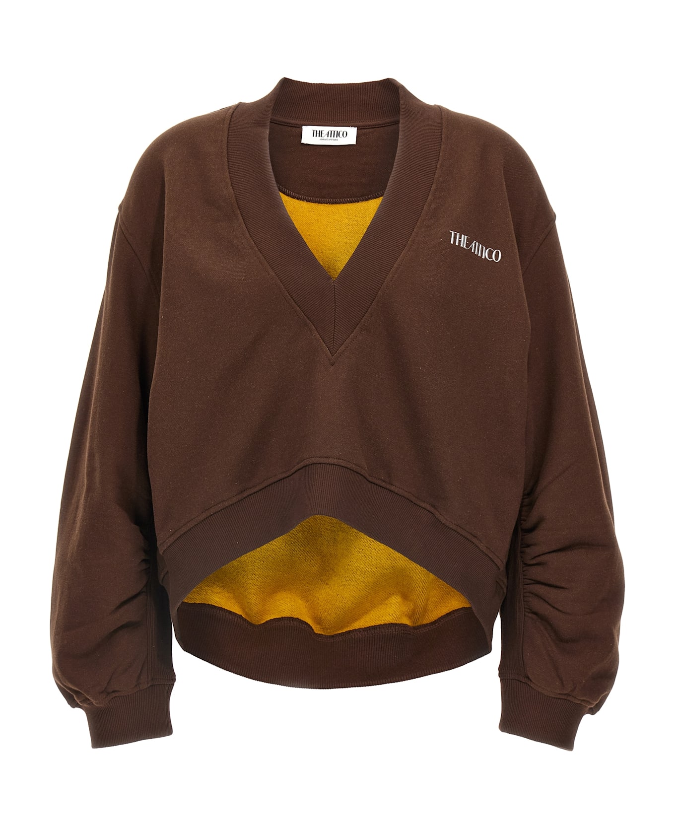 Double American fleece sweatshirt with embossed 3D logo on the front, V-neck, long sleeves with cuffs, ribbed cotton curling and insert. Composition: 100% cotton