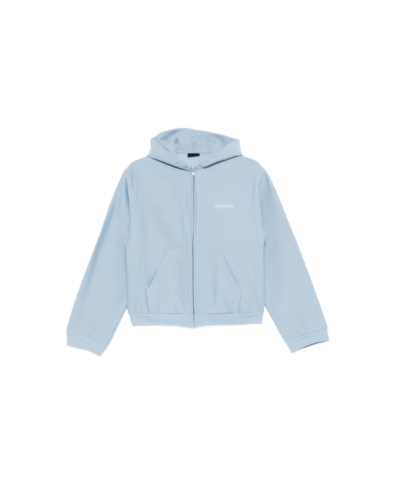 light blue hood front zip fastening front pouch pocket long sleeves ribbed hem