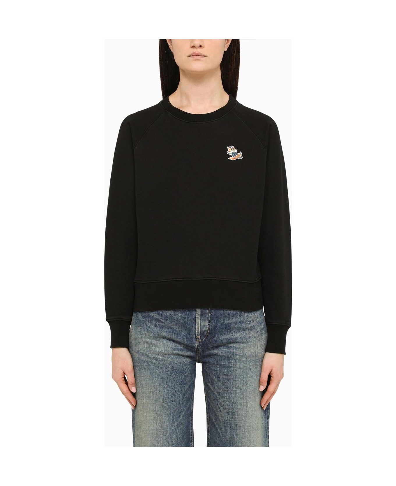 Black cotton jersey classic sweatshirt by Maison Kitsun\u00e9 with long sleeves, ribbed edges and chest patch.