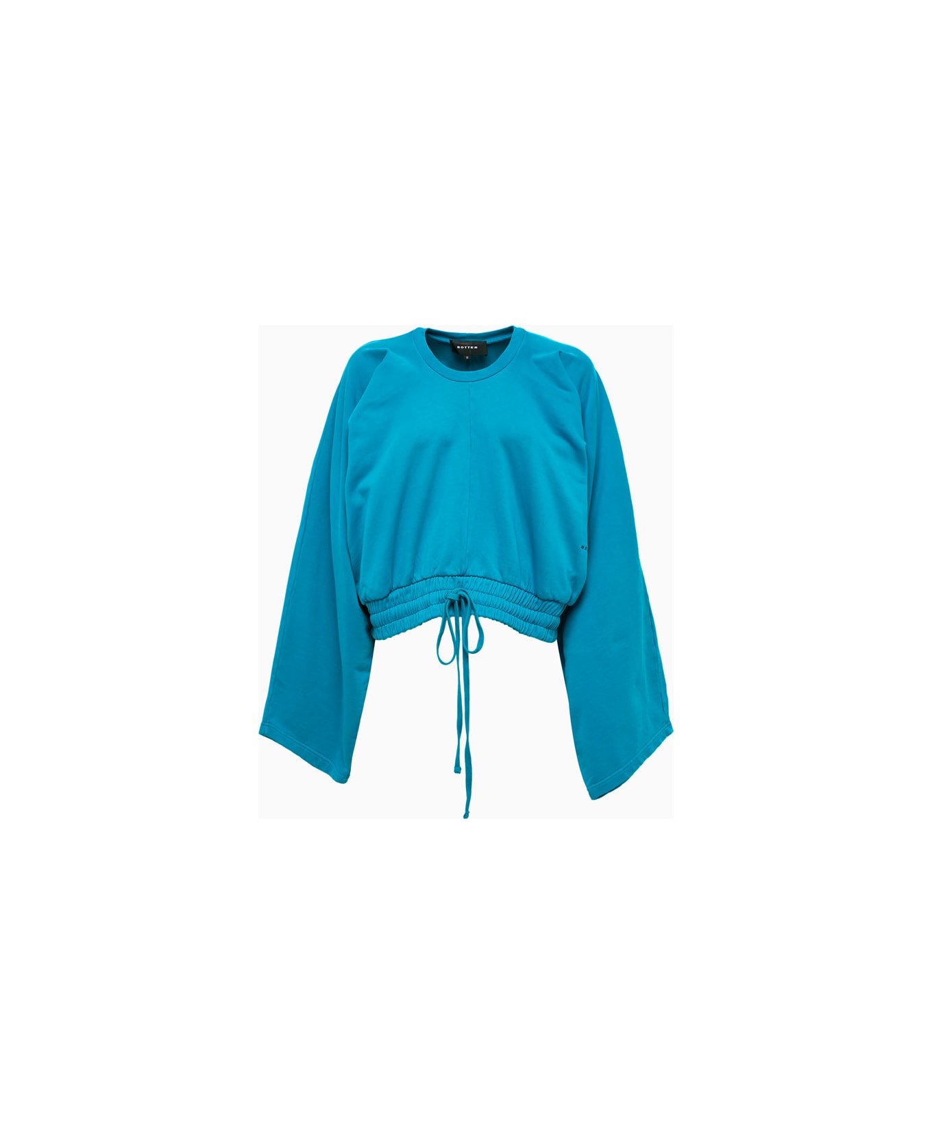 upsidedown crew neck sweatshirt which takes on the silhouette of a pair of pants, made of solid color organic cotton. macro elastic and drawstring at bottom. extra-long sleeves. side welt pockets. botter reverse logo at hem side. gauzed cotton interior. loose fit. composition: 100% cotton.