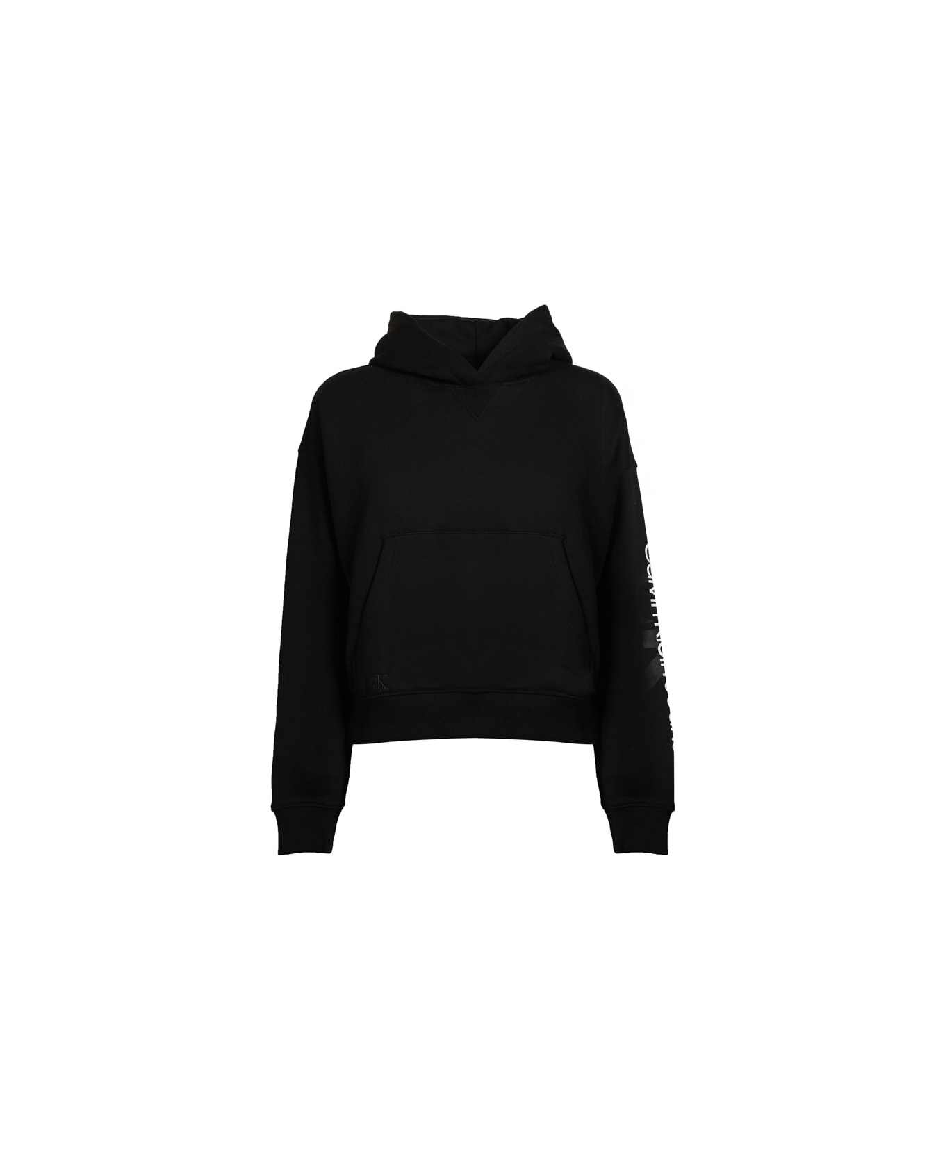 Ck black Calvin Klain Sweatshirt from Calvin Klein - Sporty design - Calvin Klein Jeans logo - Regular fit - Hood - Drop shoulders - Long sleeves - Shaped cuffs - Kangaroo pockets - Straight hem - COLOR: BLACK -- COTTON (55% ), POLYESTER PES (45%)