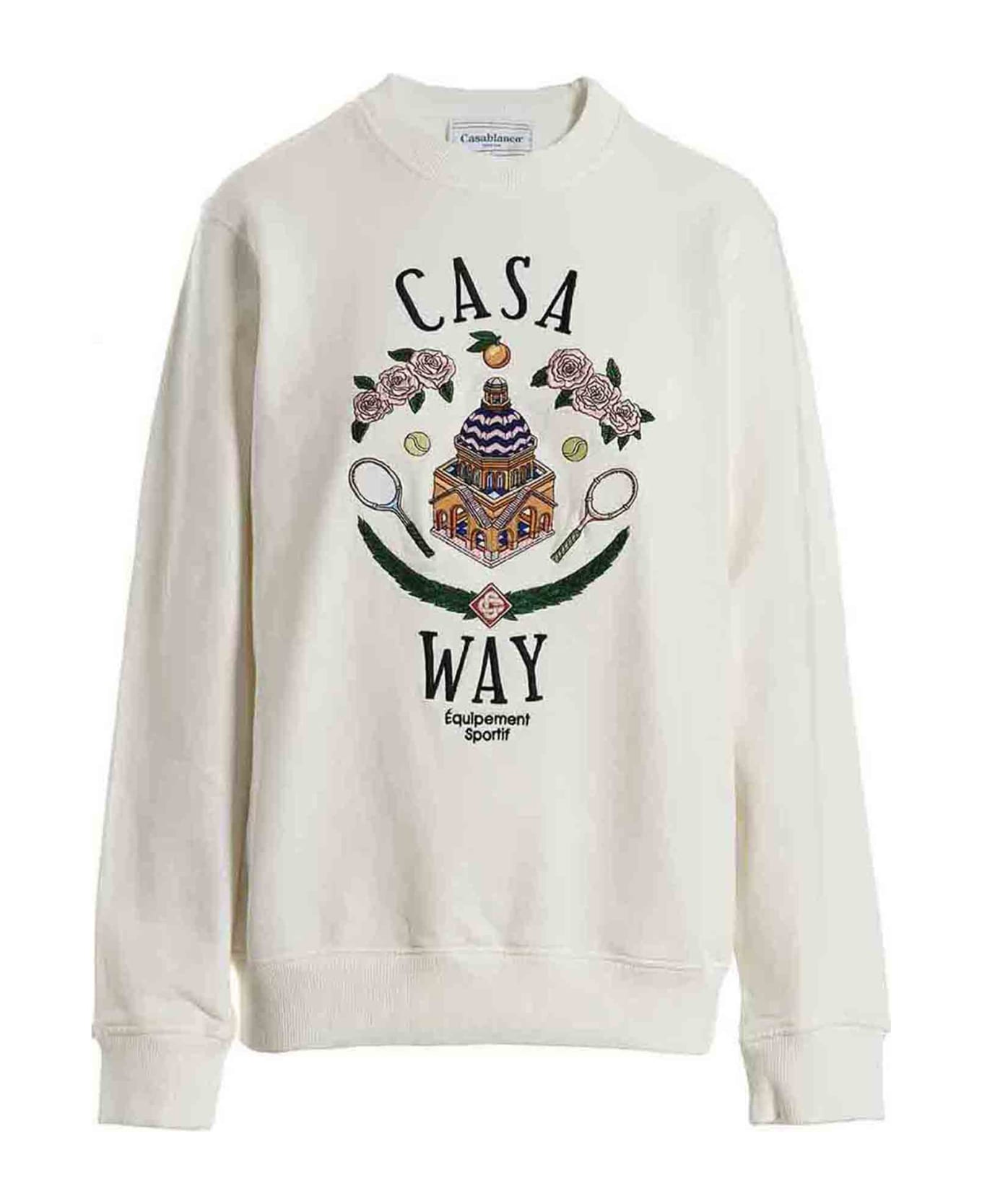 'Casa way' gauze cotton sweatshirt with crewneck, front embroidery. Composition: 100% organic cotton