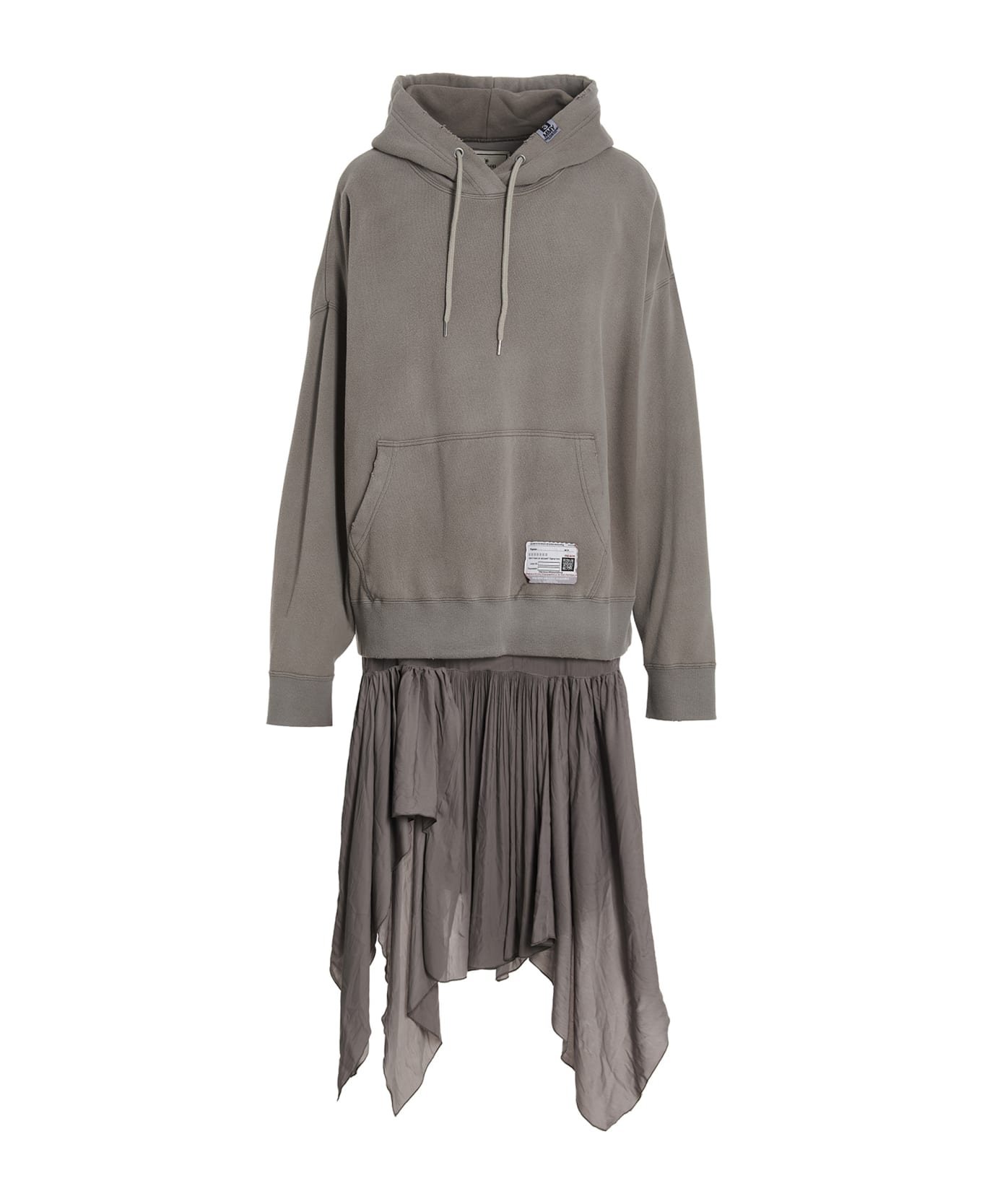 Combined' dress consisting of two different fabrics, sweatshirt-style upper part and an asymmetrical light fabric skirt.