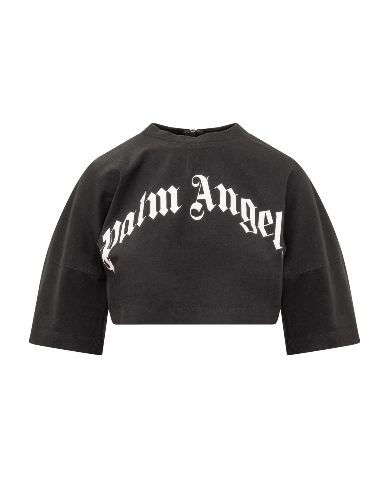 Cropped top. Crew neck. Ribbed neck. Zip back closure. Curved logo printed on the front. Composition: 100% Cotton