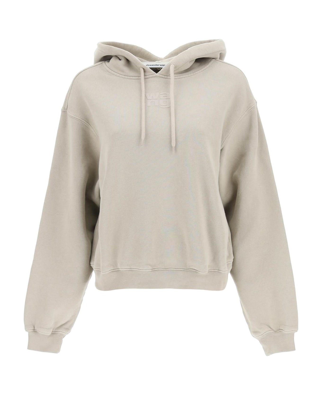 Alexander Wang hooded sweatshirt crafted in structured terry with a classic design and a loose fit with boxy cut. Tone-on-tone embossed logo on the front. Rib-knit edges. The model is 177 cm tall and wears a size XS.