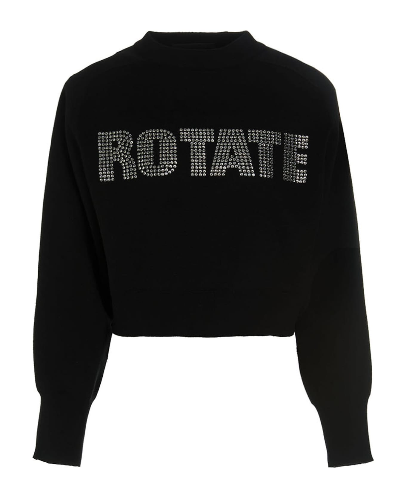 Firm Rhinestone' cotton and cachemire sweatshirt with front sequin logo patch, crewneck, long cuffed sleeves, a cropped style and removable padded shoulders. : This product is made in organic cotton.