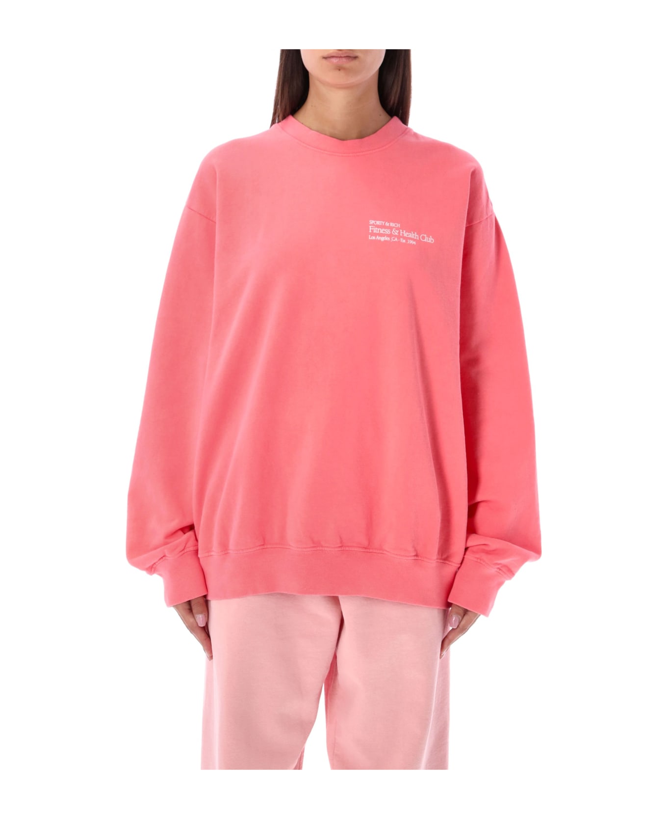 Cotton Fitness & Health Club Sweatshirt By Sporty&rich. Featuring: Ribbed Crew Neck Long Sleeves Fitness & Health Club Print At Chest And Back Rib Trims The Model Is 1,72 M Tall And She's Wearing Size M The Model Is 1,83 M Tall And He's Wearing Size M