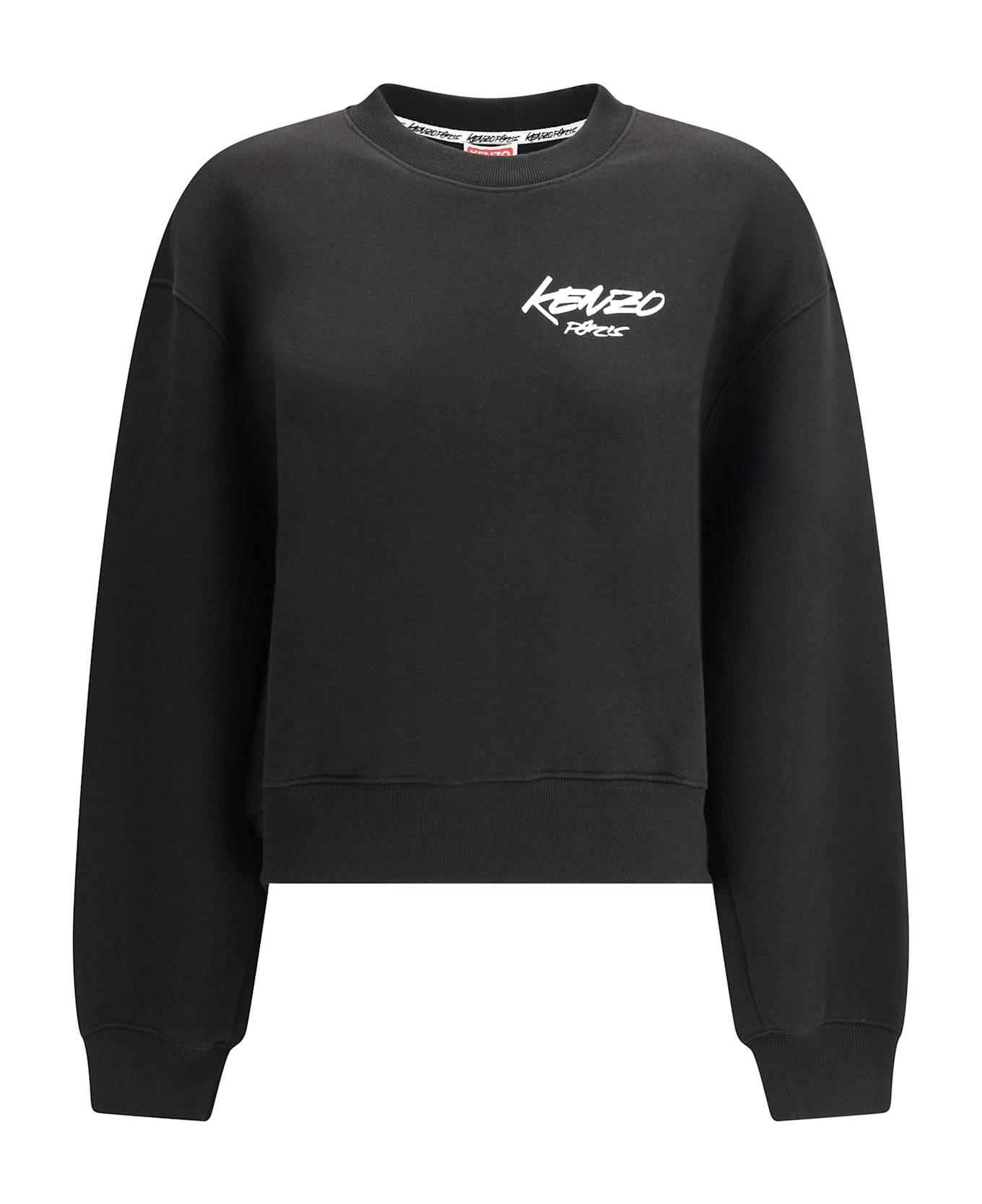 Kenzo's futura sweatshirt combines comfort and graphic character in an essential yet striking design. featuring a ribbed crew neck, hem and cuffs, it offers a comfortable, structured fit. the contrasting kenzo signature print on the front and back lends a distinctive and contemporary touch, perfect for completing casual looks with a recognizable mark.