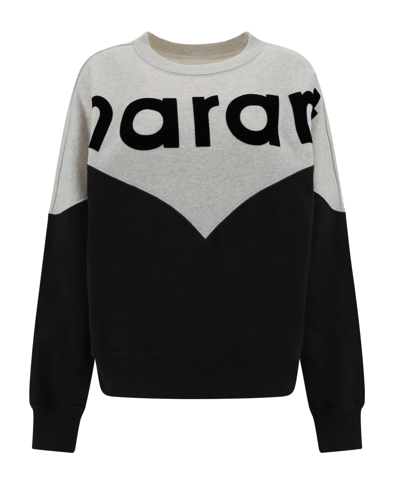 Cotton sweatshirt by marant etoile, ribbed crew neck, ribbed cuffs, ribbed hem, iconic velvet-effect brand monogram applied to front, regular fit.