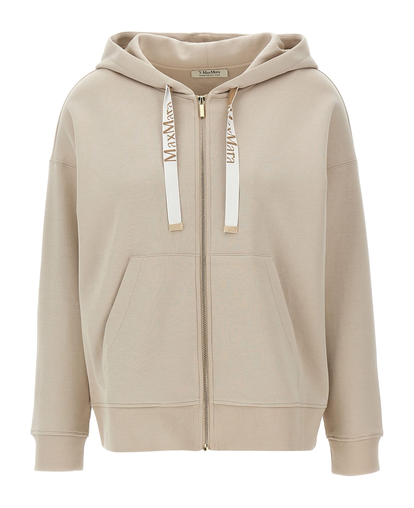 'Jour' cotton blend hoodie with drawstring and logo intarsia, front pockets, zip closure, long sleeves with elastic cuffs. Composition: 78% cotton, 22% polyester