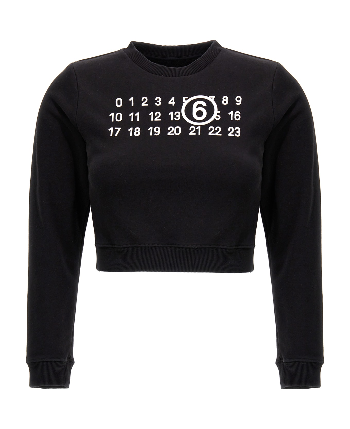 Cotton blend cropped sweatshirt with a front logo print, a crew neck, and long cuffed sleeves. Composition: 65% cotton 35% elastane