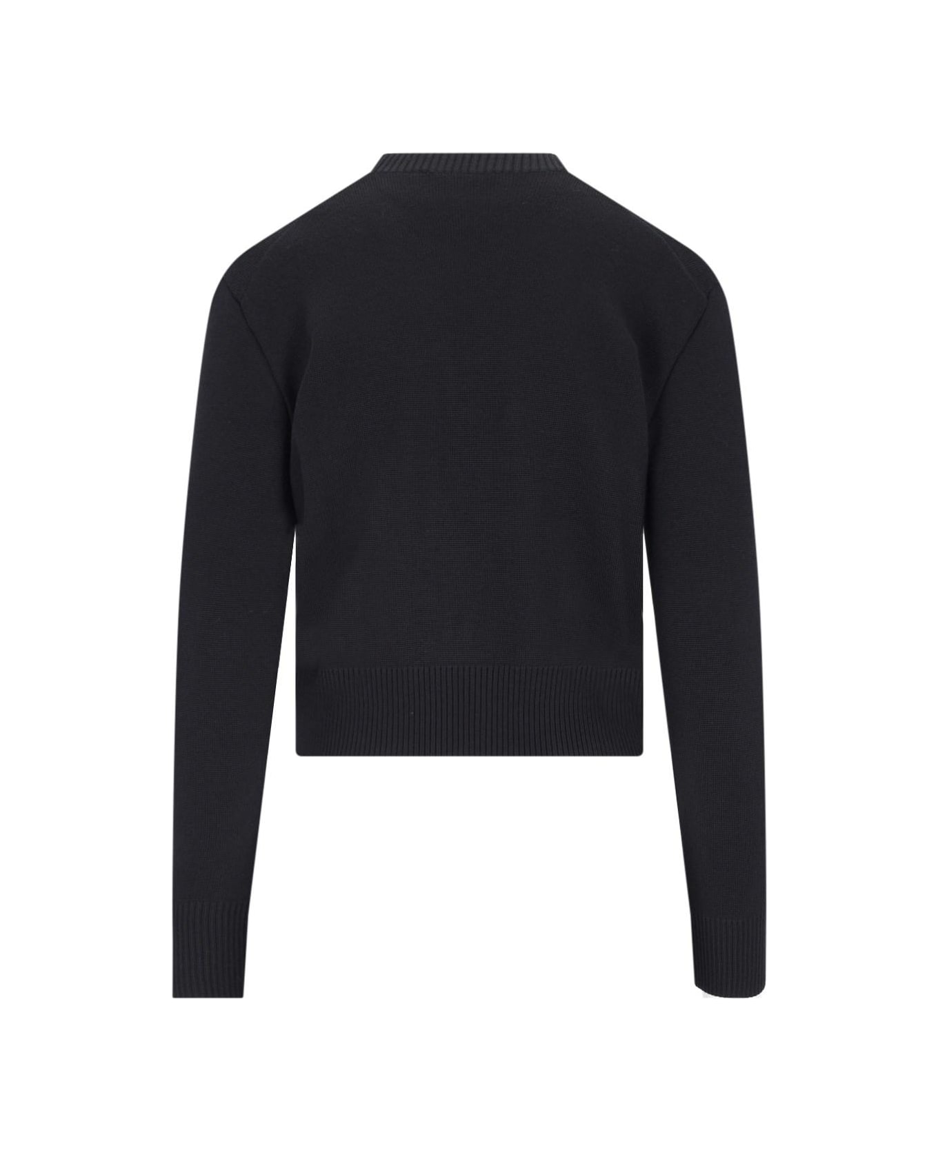 Ami logo sweater in black wool with crewneck, red logo embroidery on the chest, ribbed trims, straight hem.