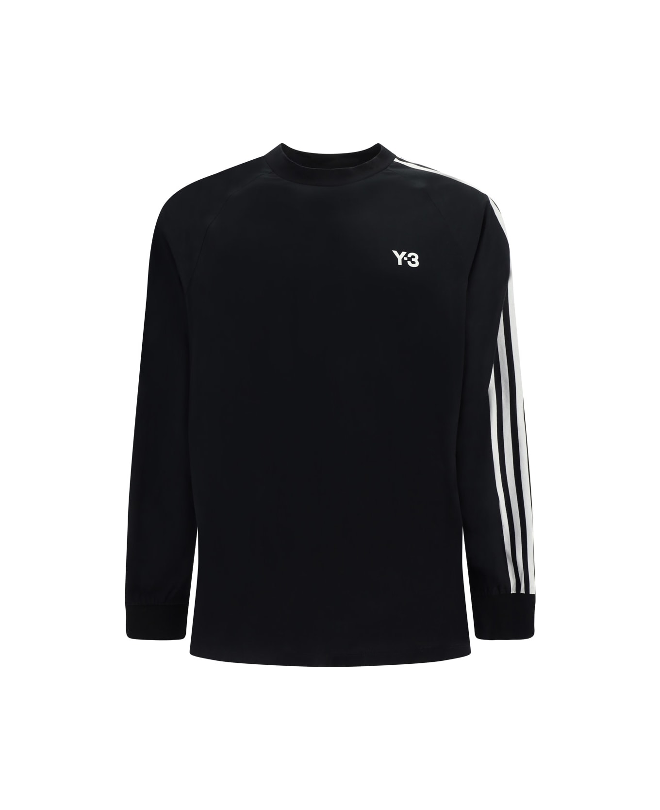 Cotton long-sleeve jersey by y-3, elasticized crew neck, iconic brand logo printed in contrast on front, iconic contrasting bands on sleeves, elasticized cuffs, regular fit.