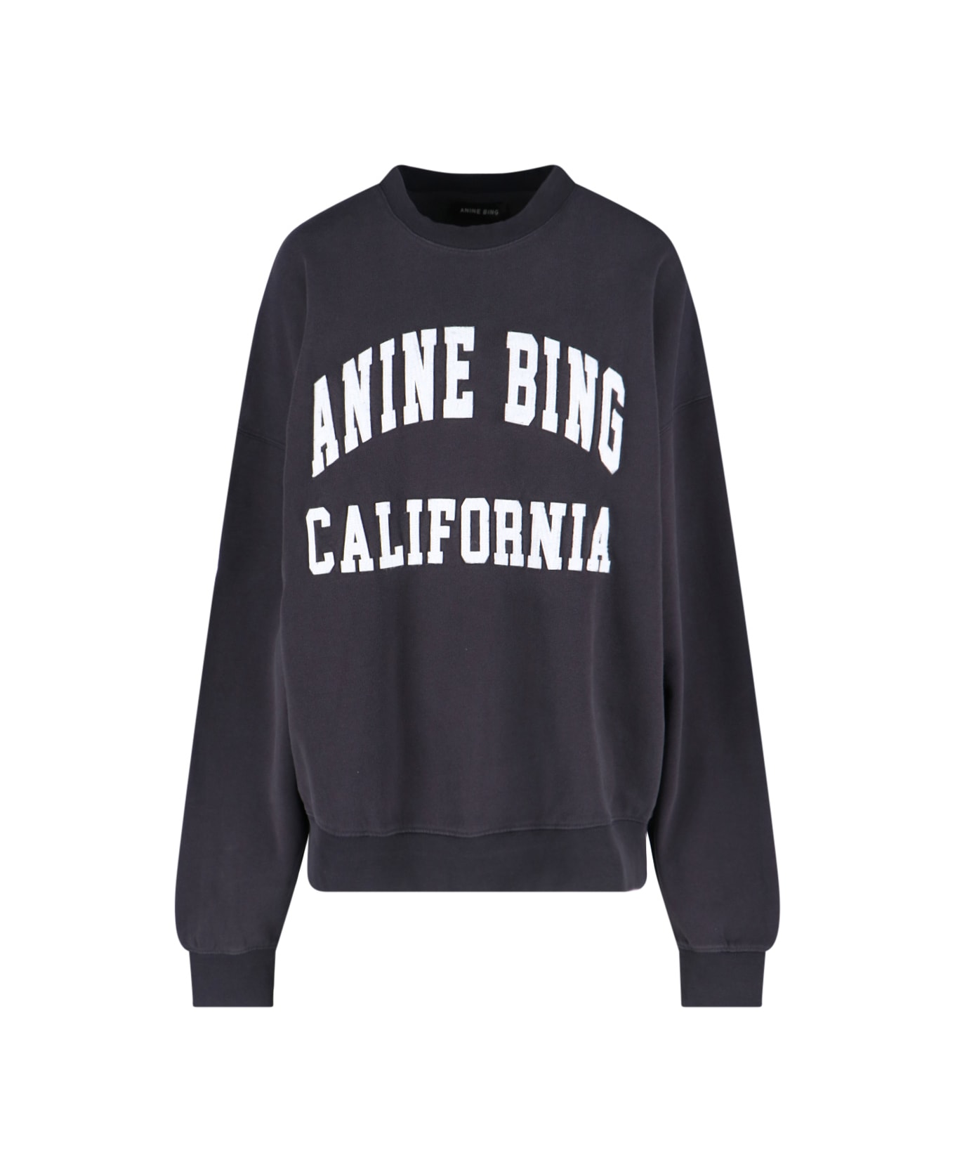 Anine Bing 'miles' crew neck sweatshirt in black cotton with usured wash, logo print on the front, ribbed trims, embossed logo print on the back, straight hem.