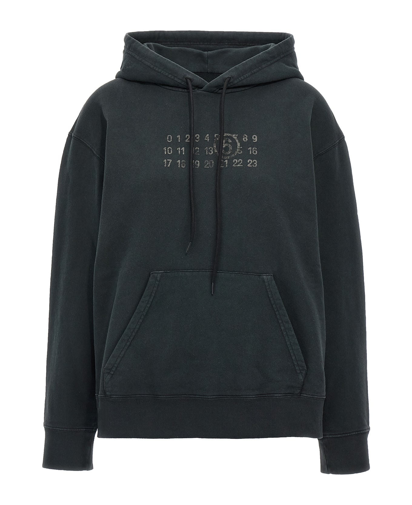 Hoodie in brushed cotton jersey with tone-on-tone 'Numeric signature MM6' craqué print on the front, kangaroo pocket, long cuffed sleeves and dropped shoulders, and 'White stitch line' on the back. Composition: 100% cotton