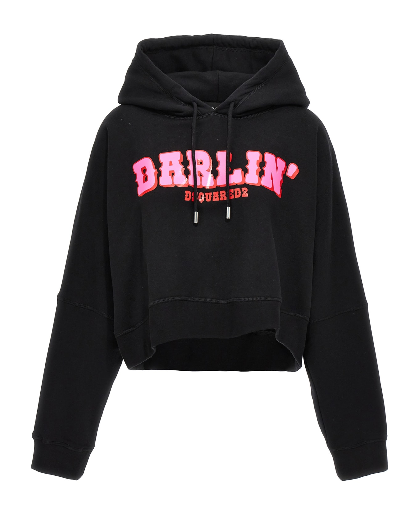 'Onion' cotton hoodie with front print, long cuffed sleeves, cropped pattern.