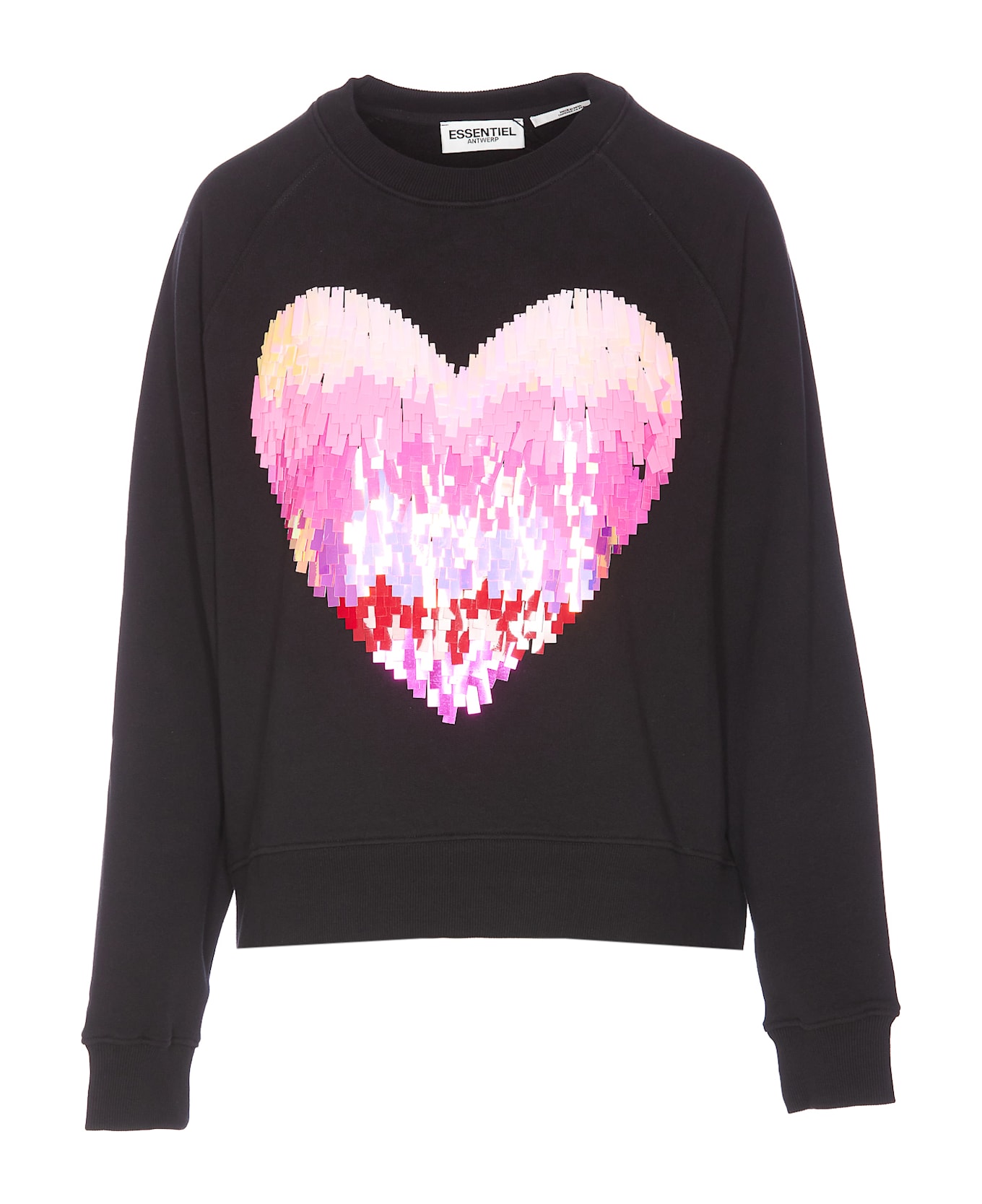 Essentiel Antwerp black Heater sweatshirt, crewneck, frontal heart with sequins detail