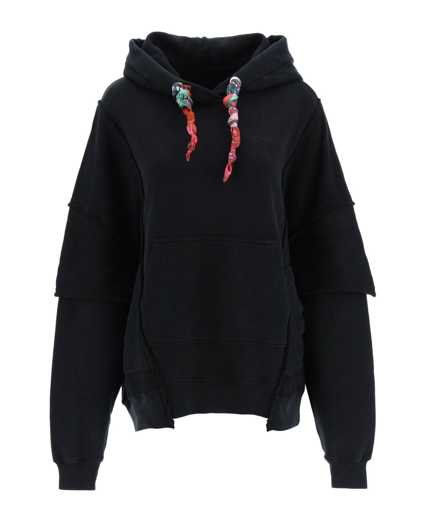 Khrisjoy pure cotton hoodie, embellished with a knotted bandana drawstring. Paneled construction with inside-out inserts, enriched by a front kangaroo pocket and logo print on the chest. Oversized fit. The model is 177 cm tall and wears a size 0.