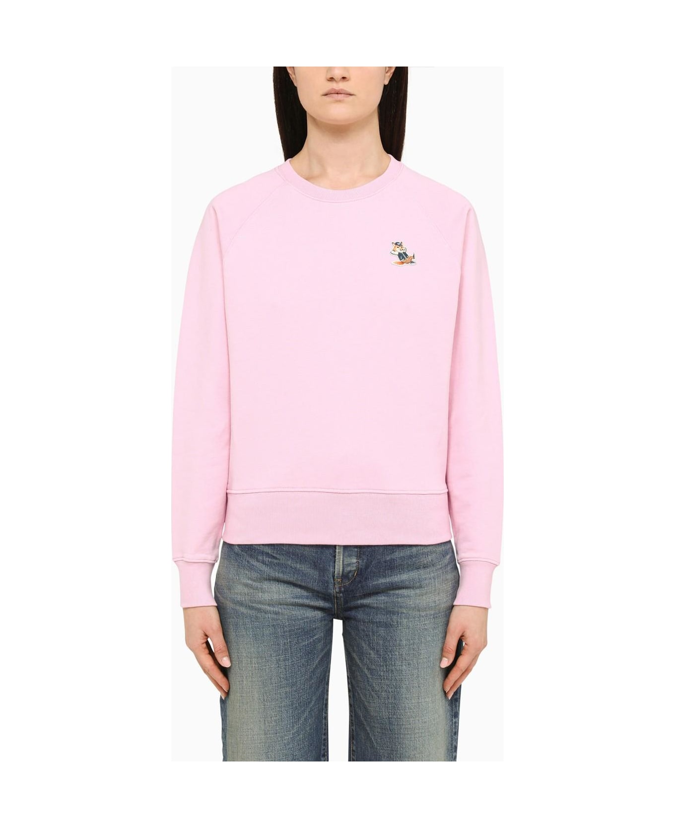 Pink cotton jersey classic sweatshirt by Maison Kitsun\u00e9 with long sleeves, ribbed edges and chest patch.
