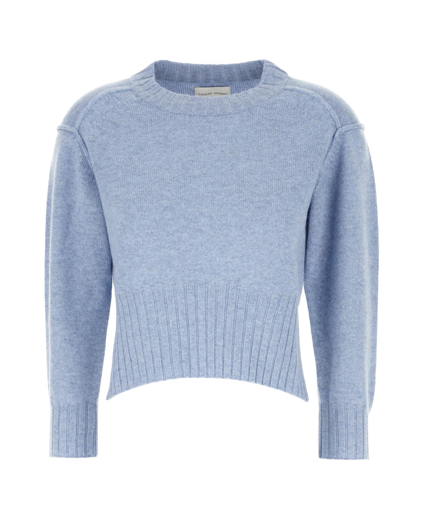 Short-cut sweater realized in pure cashmere characterized by tonal logoed embroidery on the hemline. -Ribbed crew-neck, cuffs and hemline -Lateral slits on the hemline
