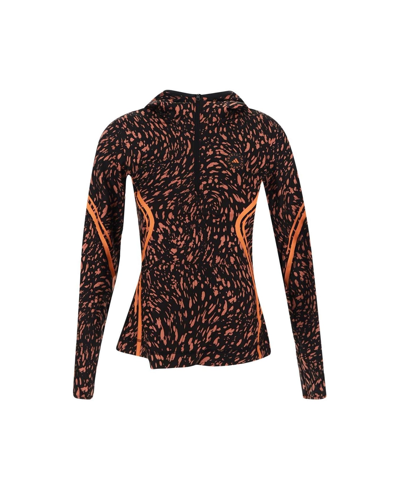 Adidas By Stella McCartney hoodie in black polyester with all-over print. It features by half zip closure, logo print and long sleeves.