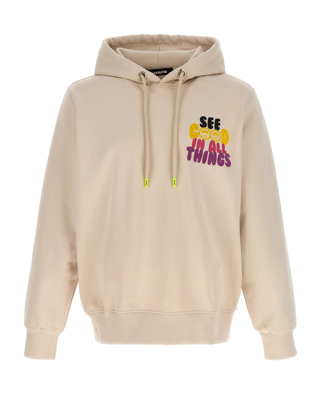 Cotton hoodie with print on the front and back, long sleeves with cuffs.