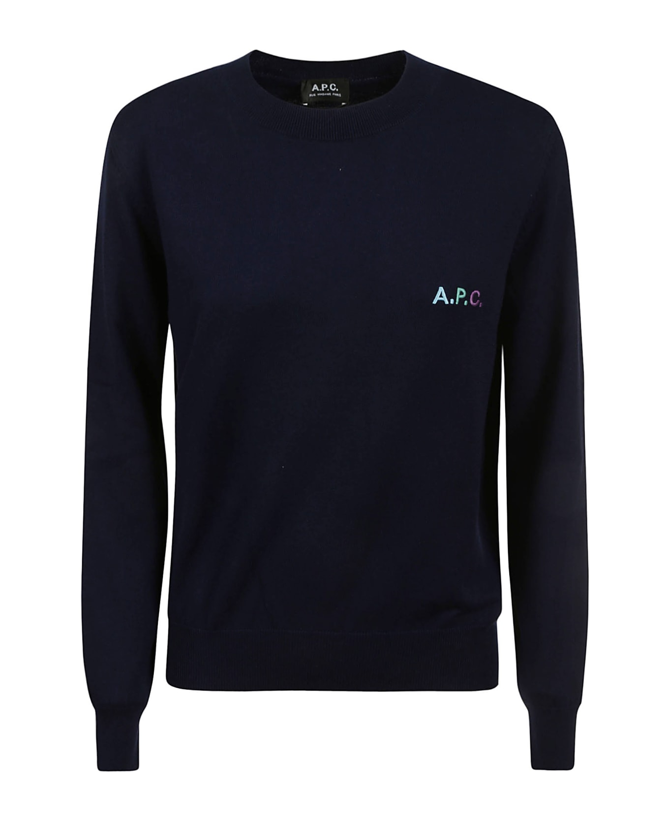 A. P. C. Blue cotton pullover, logo detail on the chest, ribbed edges.