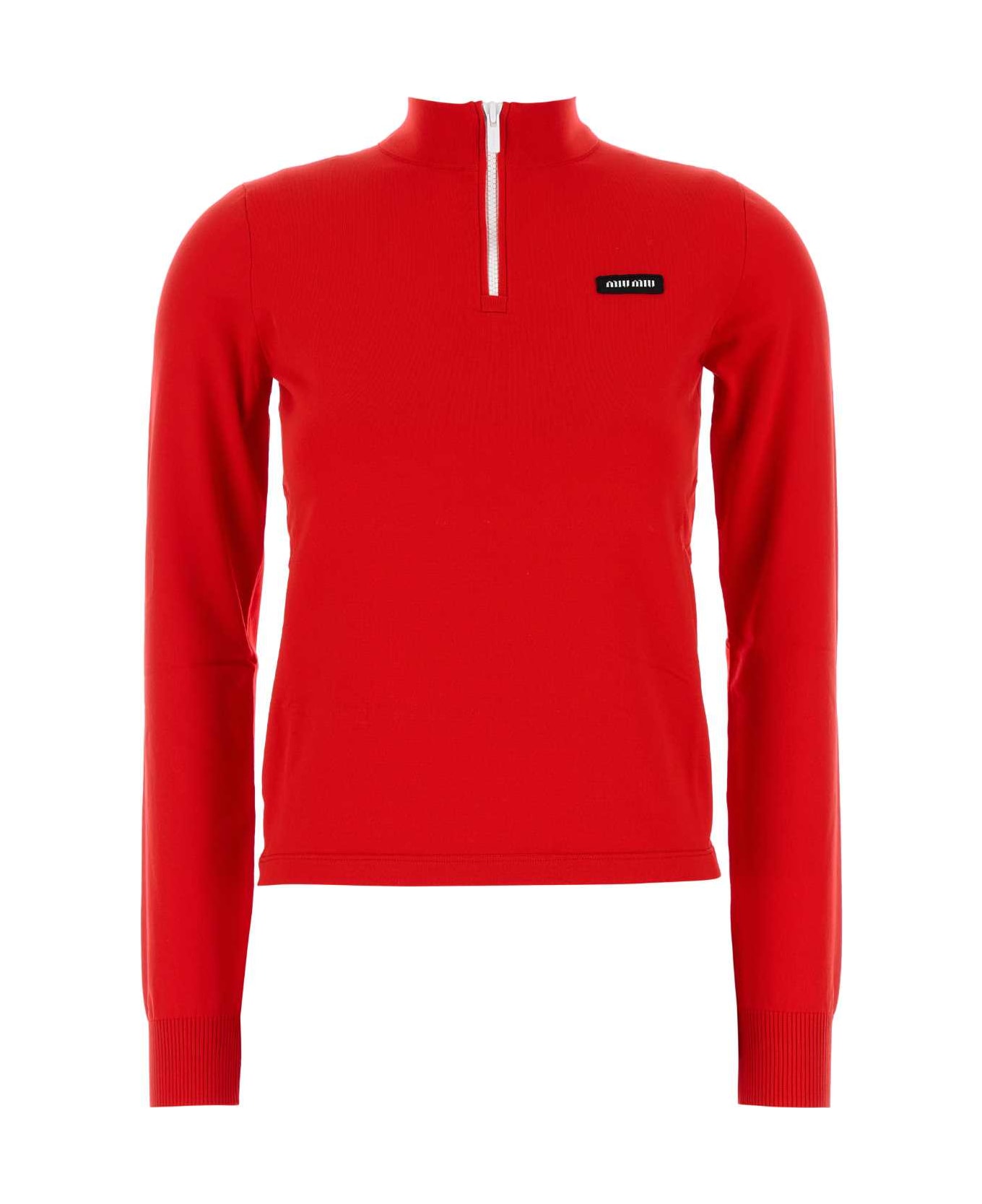 Red Stretch Nylon T-shirt from Miu Miu