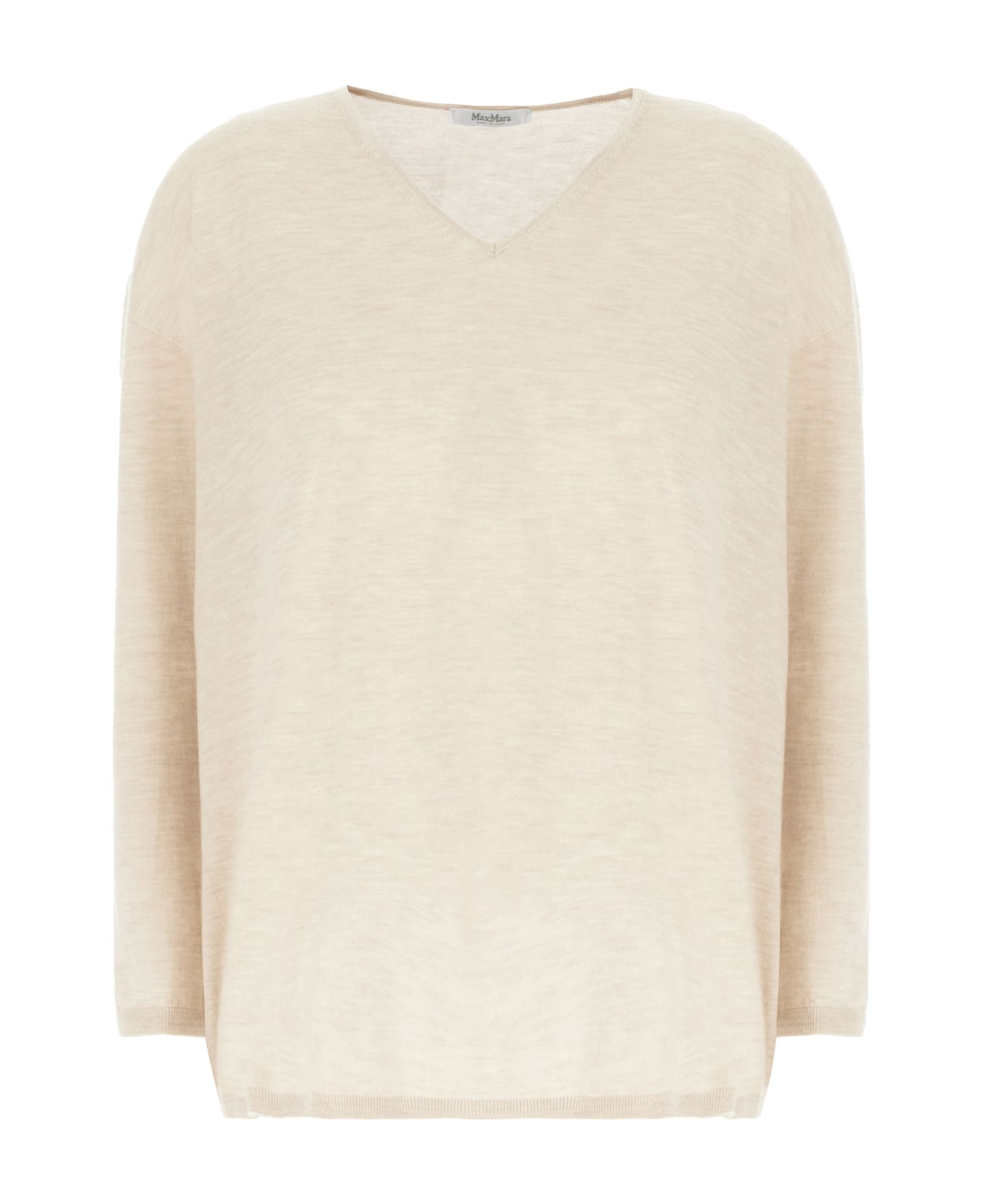 Sweater realized in pure cashmere characterized by ribbed V neckline, cuffs and hemline. -Drop shoulders -Loose fit
