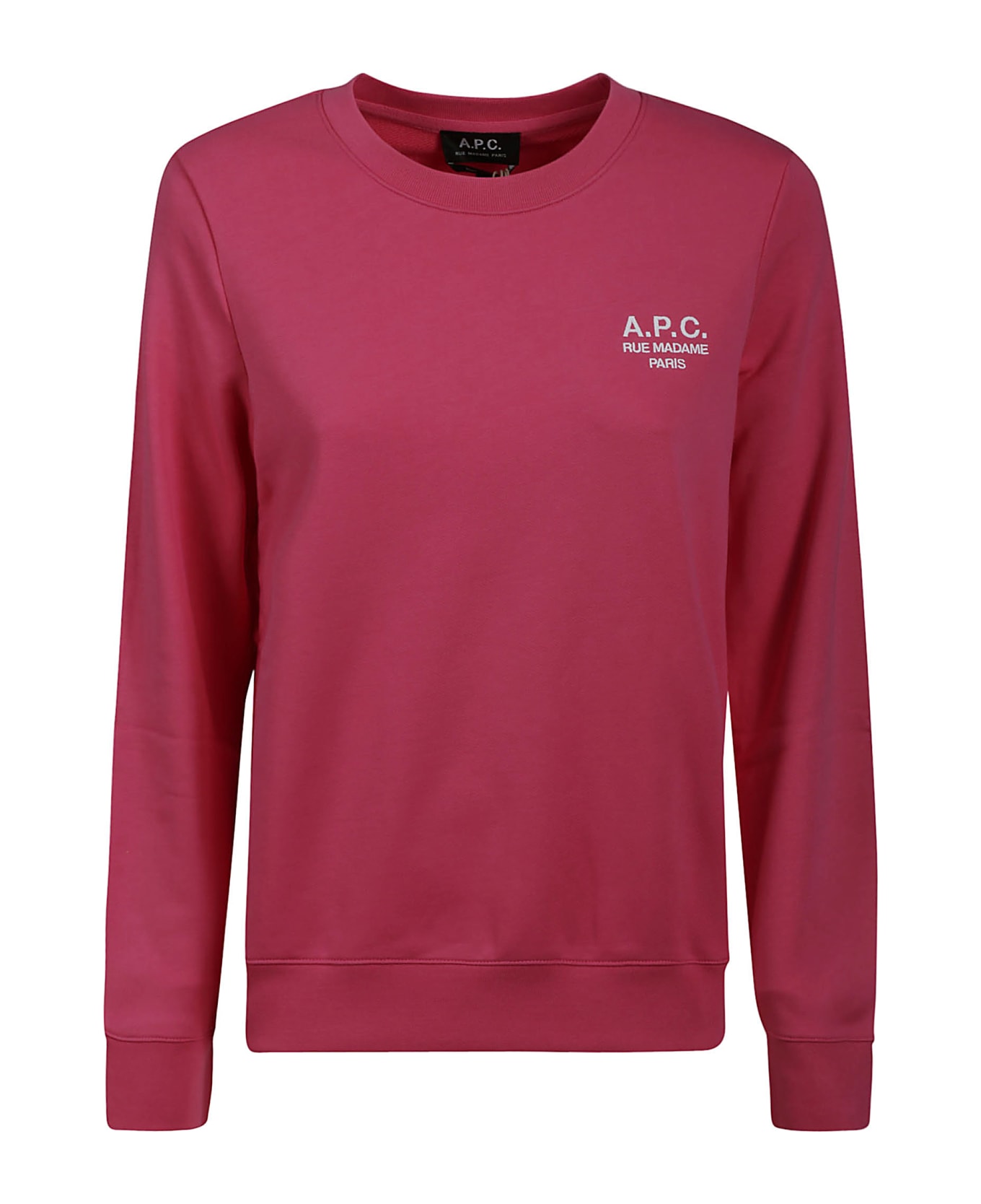 A. P. C. Fuchsia cotton sweatshirt, logo on the chest, ribbed edges.