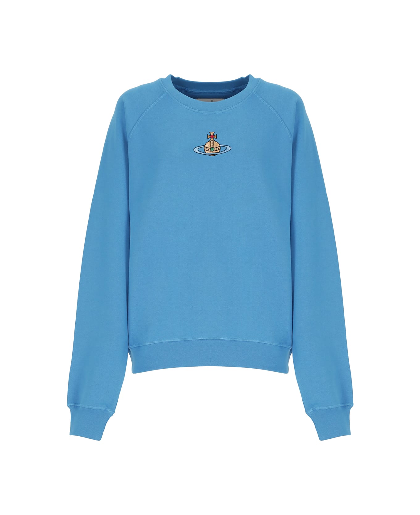 - Blue Vivienne Westwood cotton sweatshirt for woman - Crew neckline - Long sleeves - Front contrasting color embroidered logo - Elastic ribbed trims