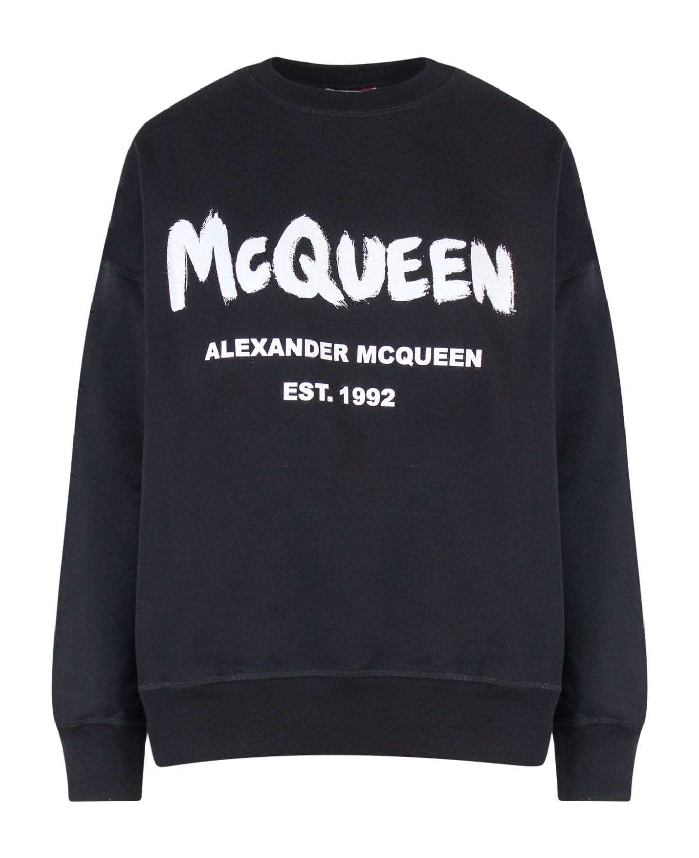 Cotton sweatshirt with McQueen Graffiti print - Ribbed Crew-neck - Long Sleeve With Ribbed Cuff - Contrasting Logo Print - Made In Italy - 100% Cotton