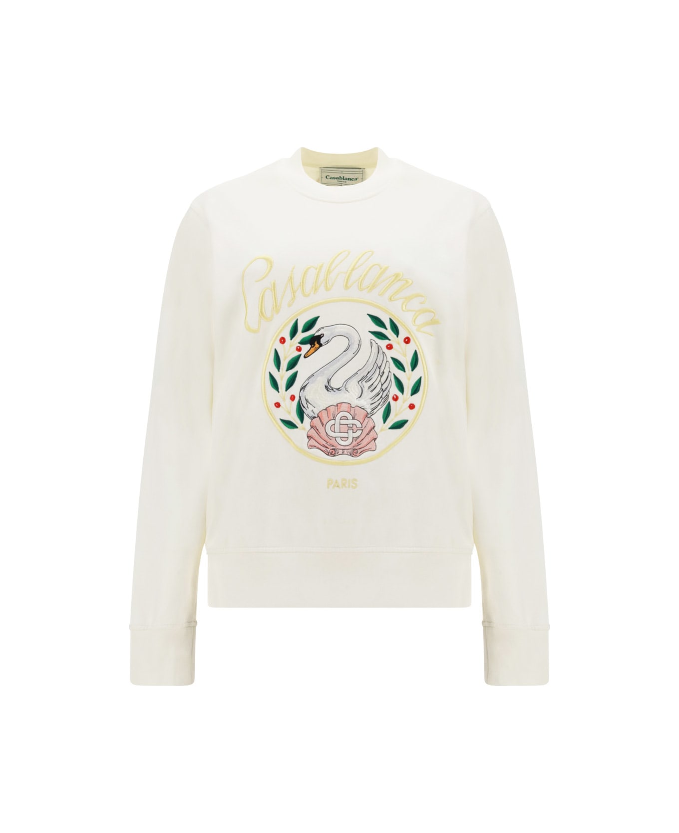 Cotton sweatshirt by casablanca, ribbed crew neck, ribbed cuffs, ribbed hem, contrasting embroidered maxi print on front, regular fit. Composition: 100% % Cotton
