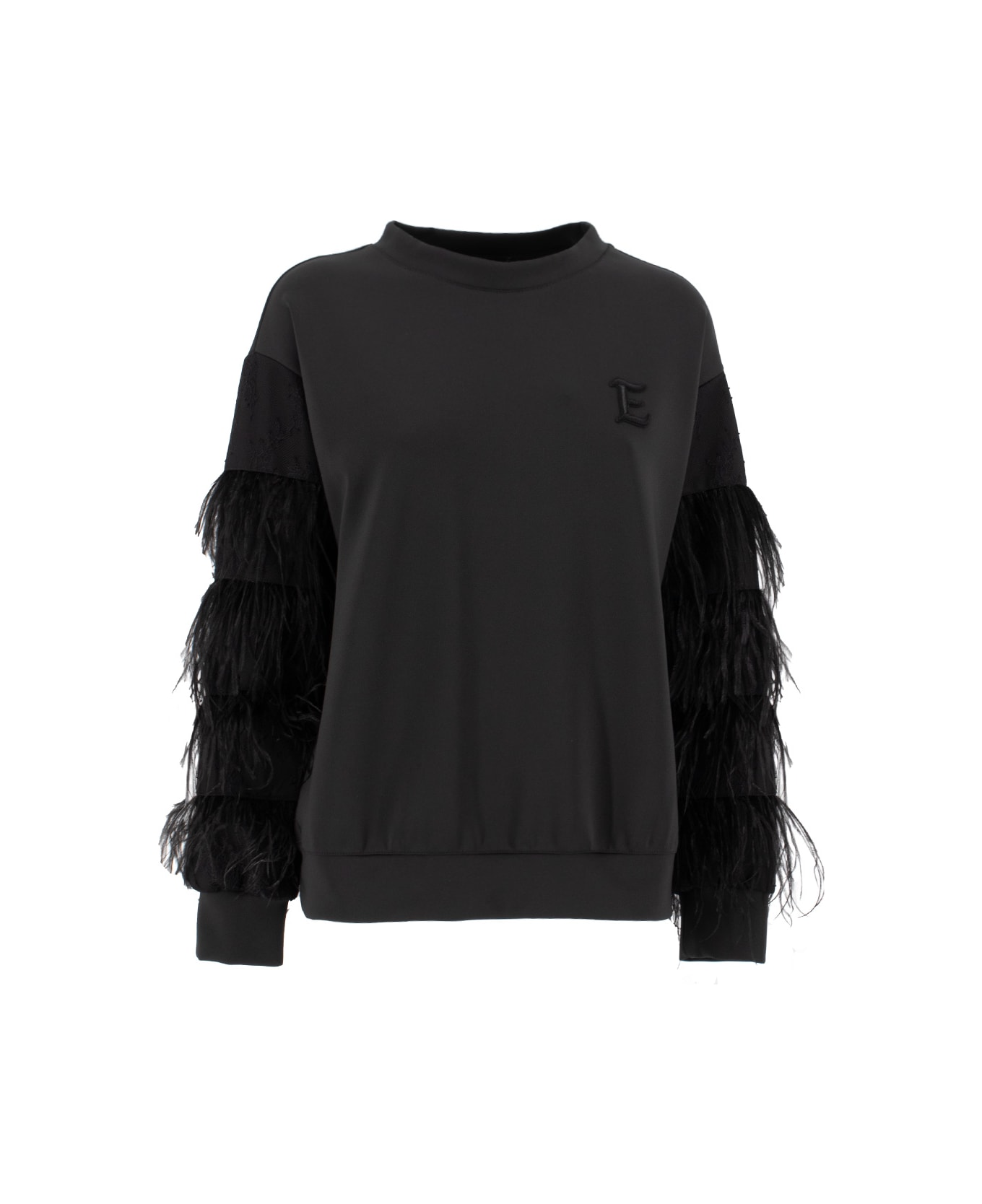 A synthesis of sporty style and glamour for the sweatshirt, embellished with feather inserts on the sleeves, gothic logo embroidered on the chest, regular fit. Composition: 89% PL, 11% EA