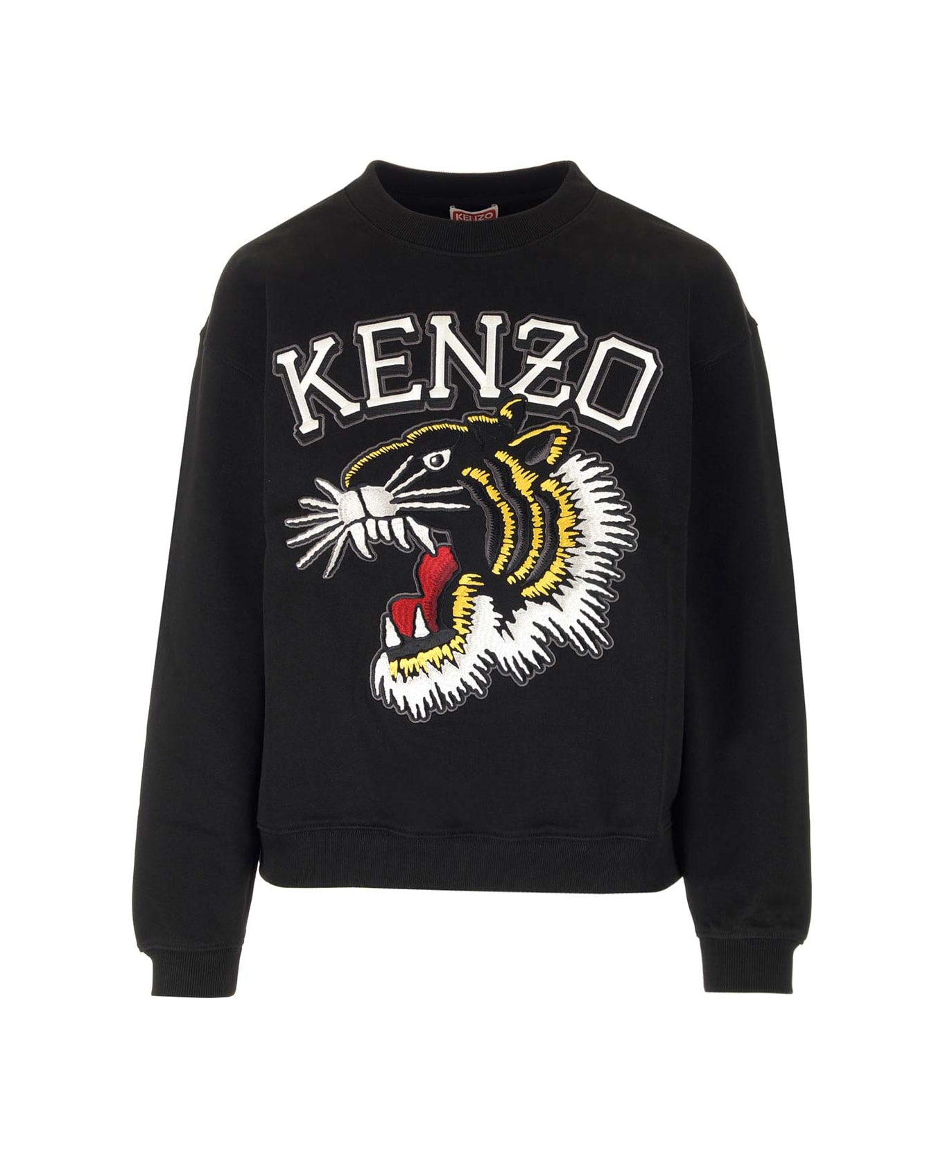 Black cotton sweatshirt with tiger head by Kenzo