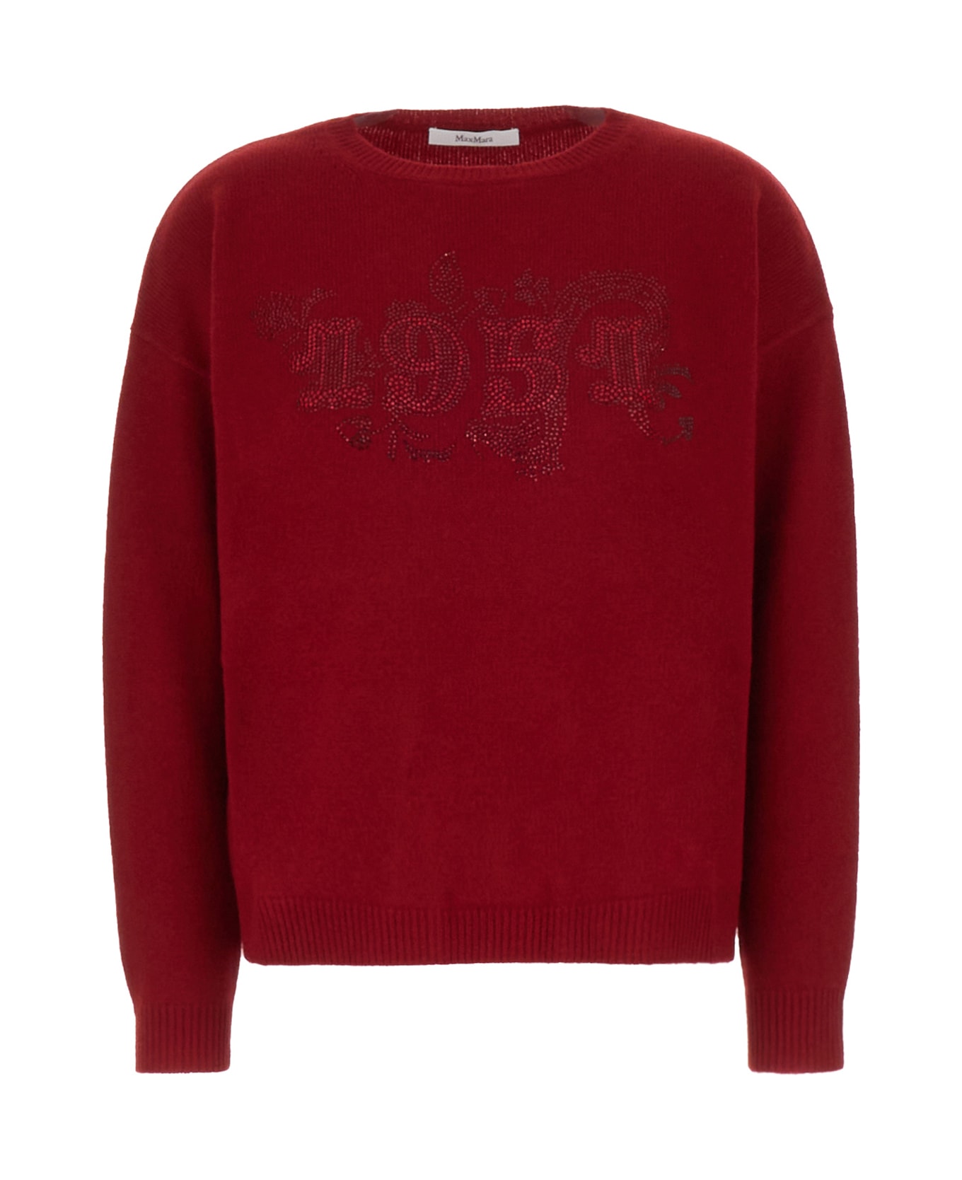 Sweater realized in wool and cashmere enriched by tonal rhinestones decoration at the front. -Ribbed crew-neck, cuffs and hemline -Loose fit
